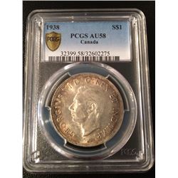 1938 Canadian Dollar PCGS-AU58 Beautiful Toning!