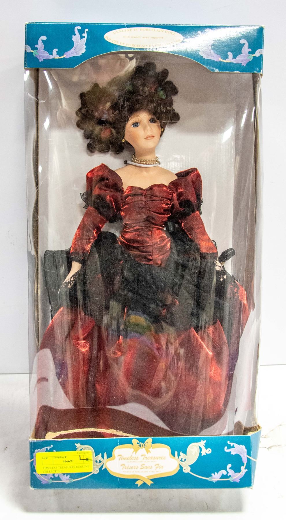 PORCELAIN DOLL - 18"-TALL, HAND PAINTED, QUALITY FABRIC - IN ORIGINAL BOX