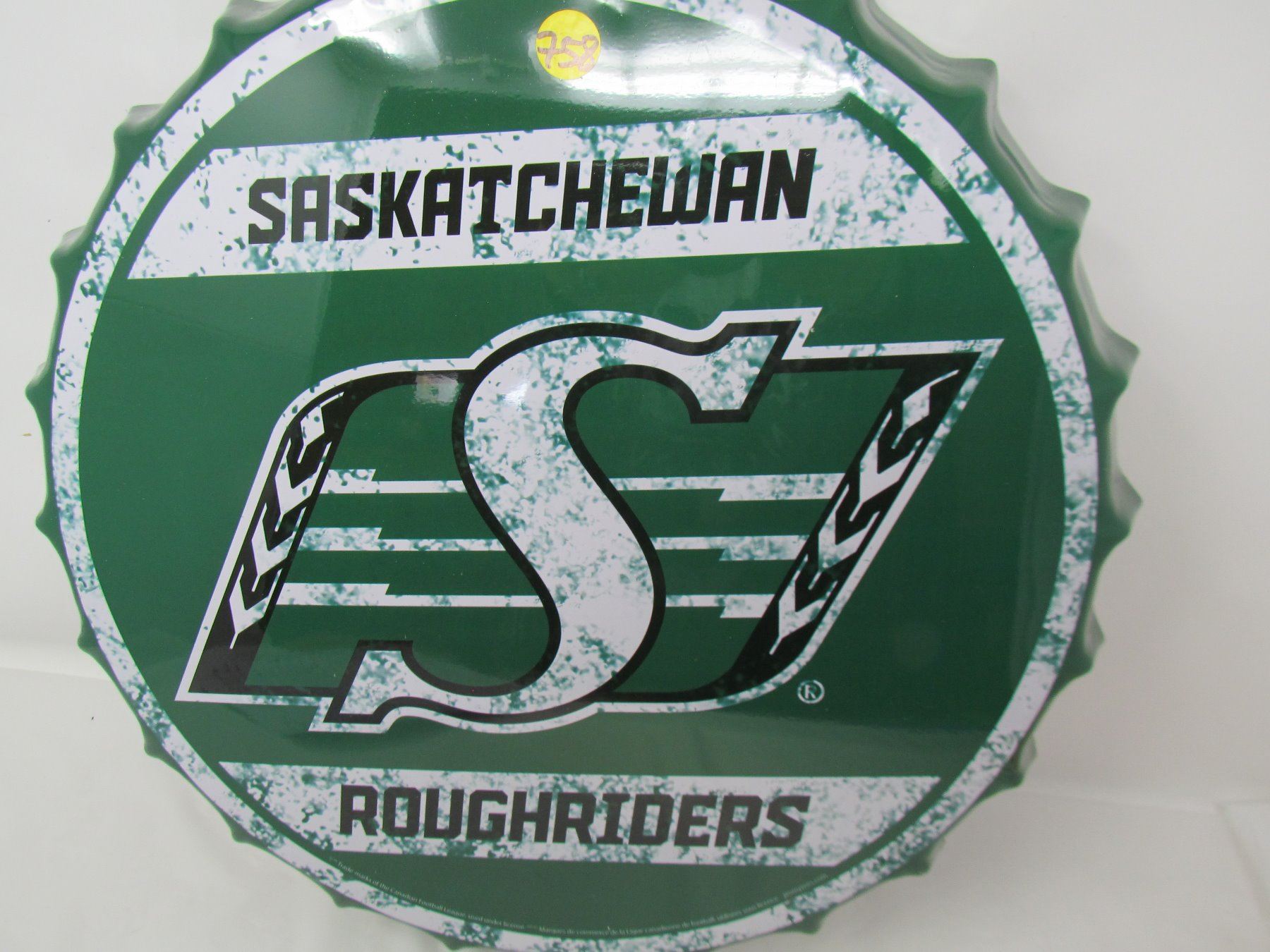 TIN BOTTLE CAP SIGN (SASK. ROUGHRIDERS) *16"*