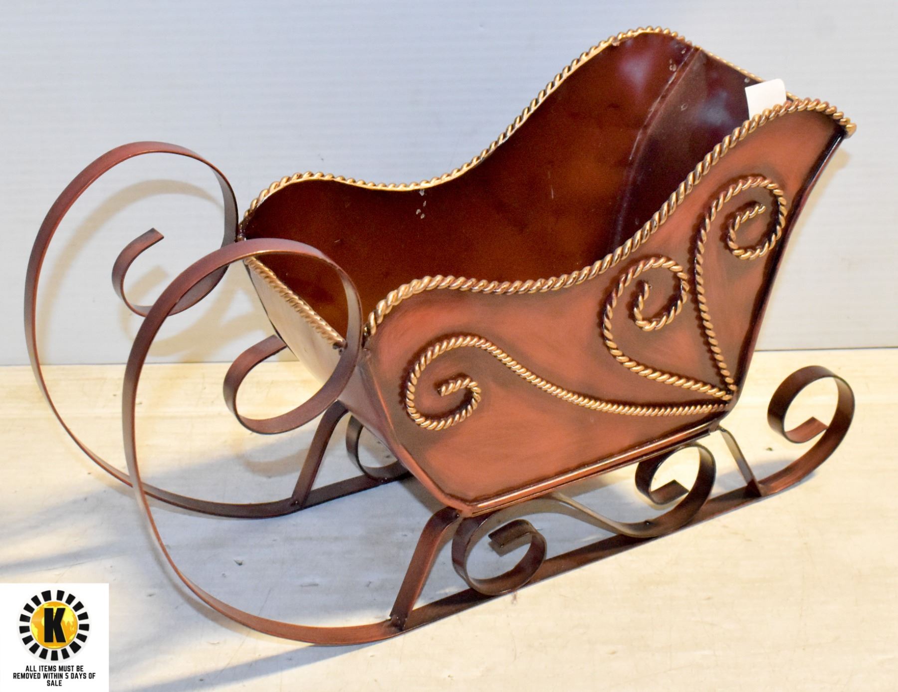 TIN CHRISTMAS SLEIGH. 13" LONG X 8" HIGH