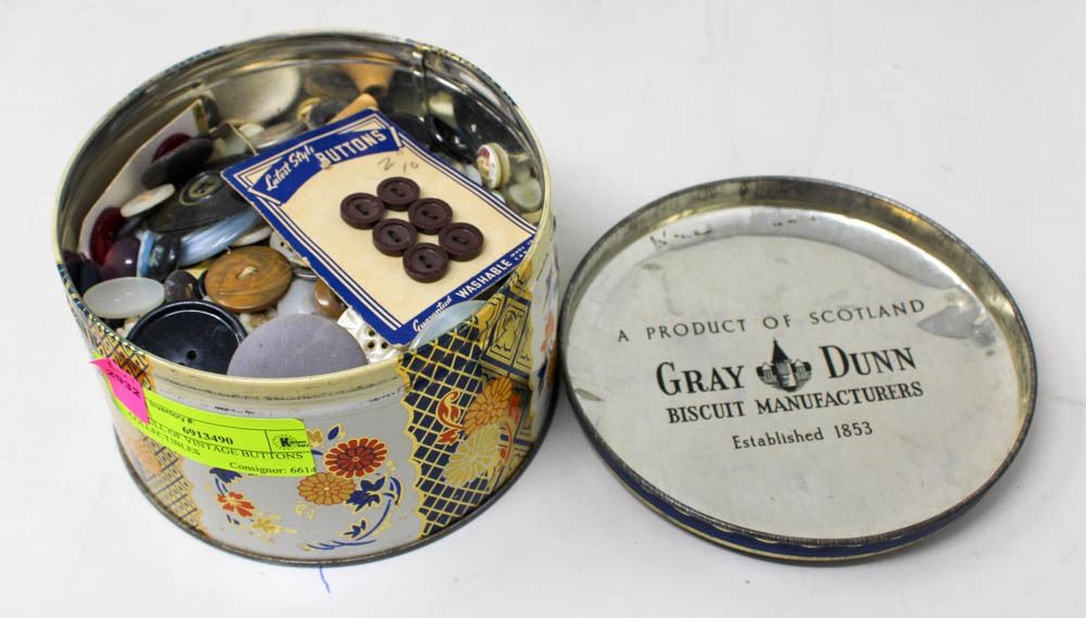 TIN FULL OF VINTAGE BUTTONS COLLECTIBLES