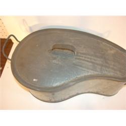 TIN HAM SHAPED ROASTER. Double handled with lid. Shows signs of wear. 20.5" L