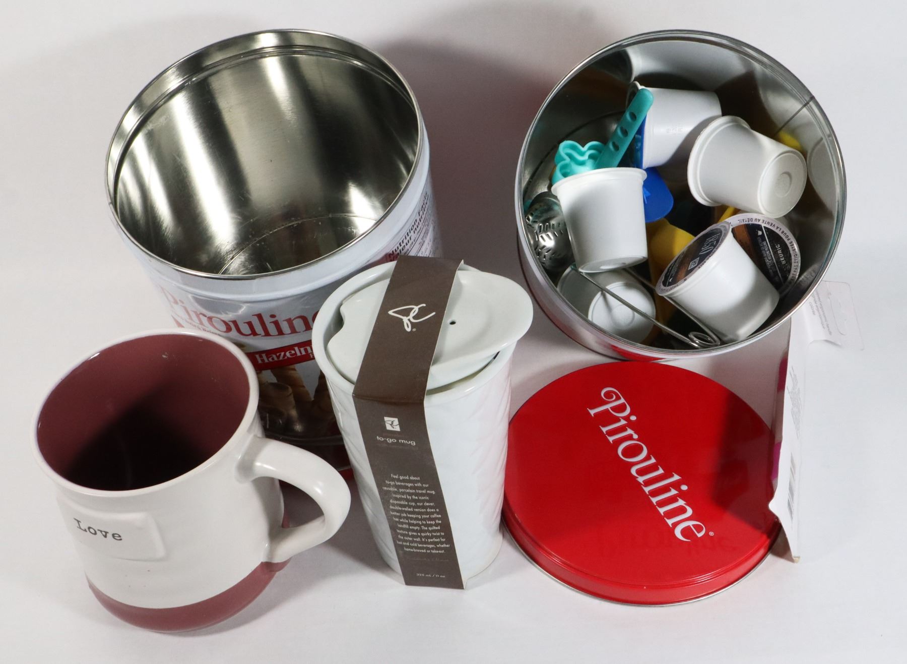 TIN OF COFFEE MUGS + TIN OF COFFEE PODS