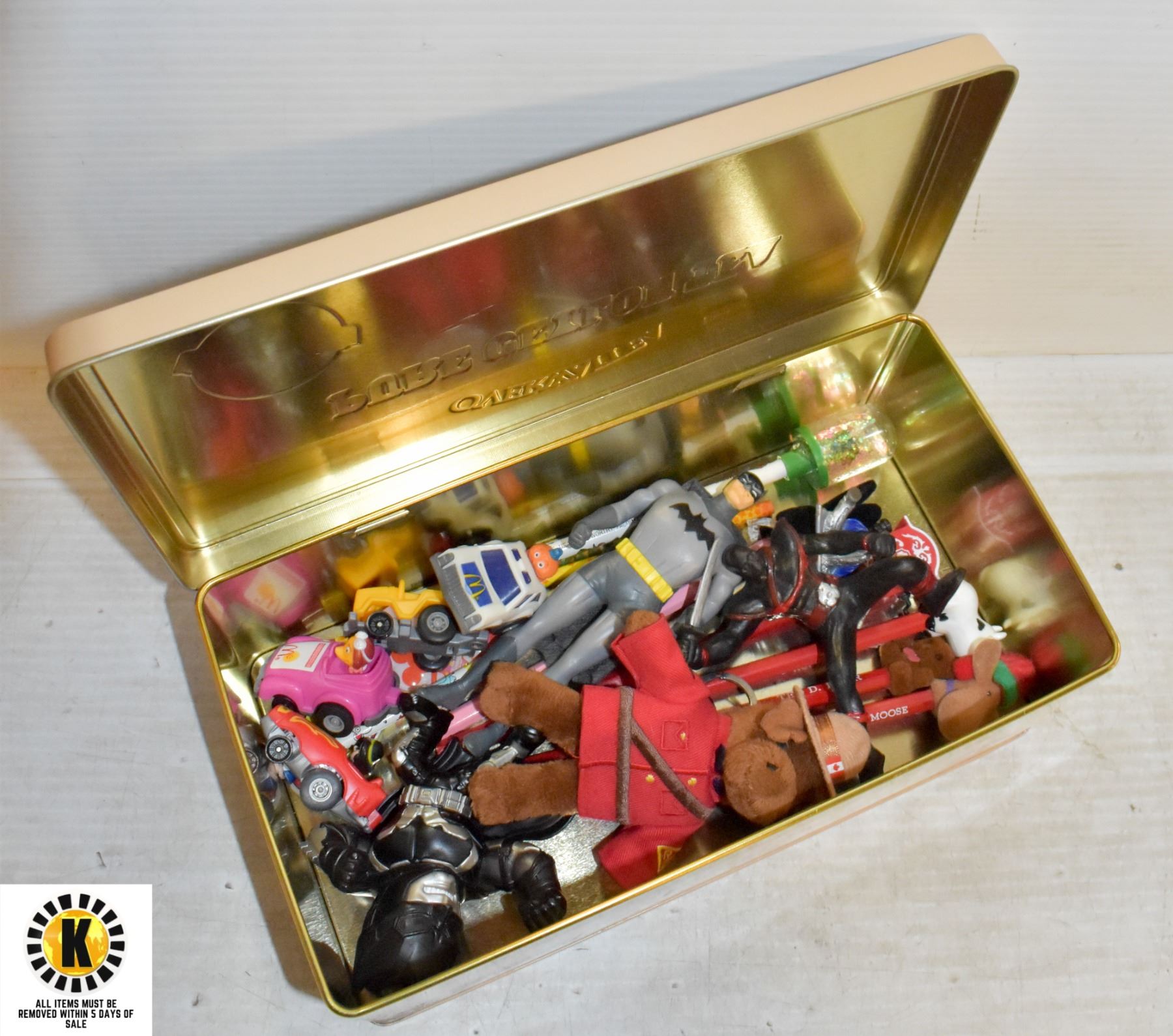 TIN OF COLLECTABLE TOYS. TMNT, BATMAN, DISNEY