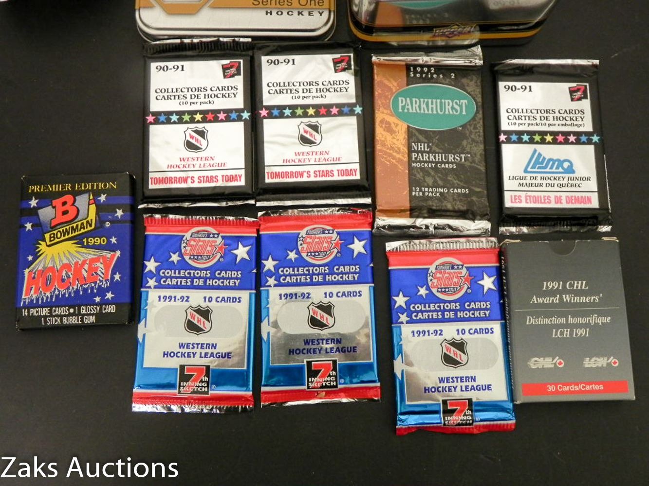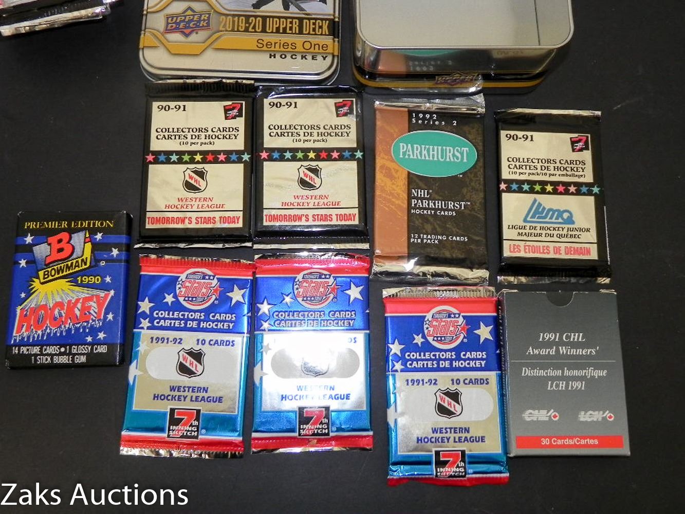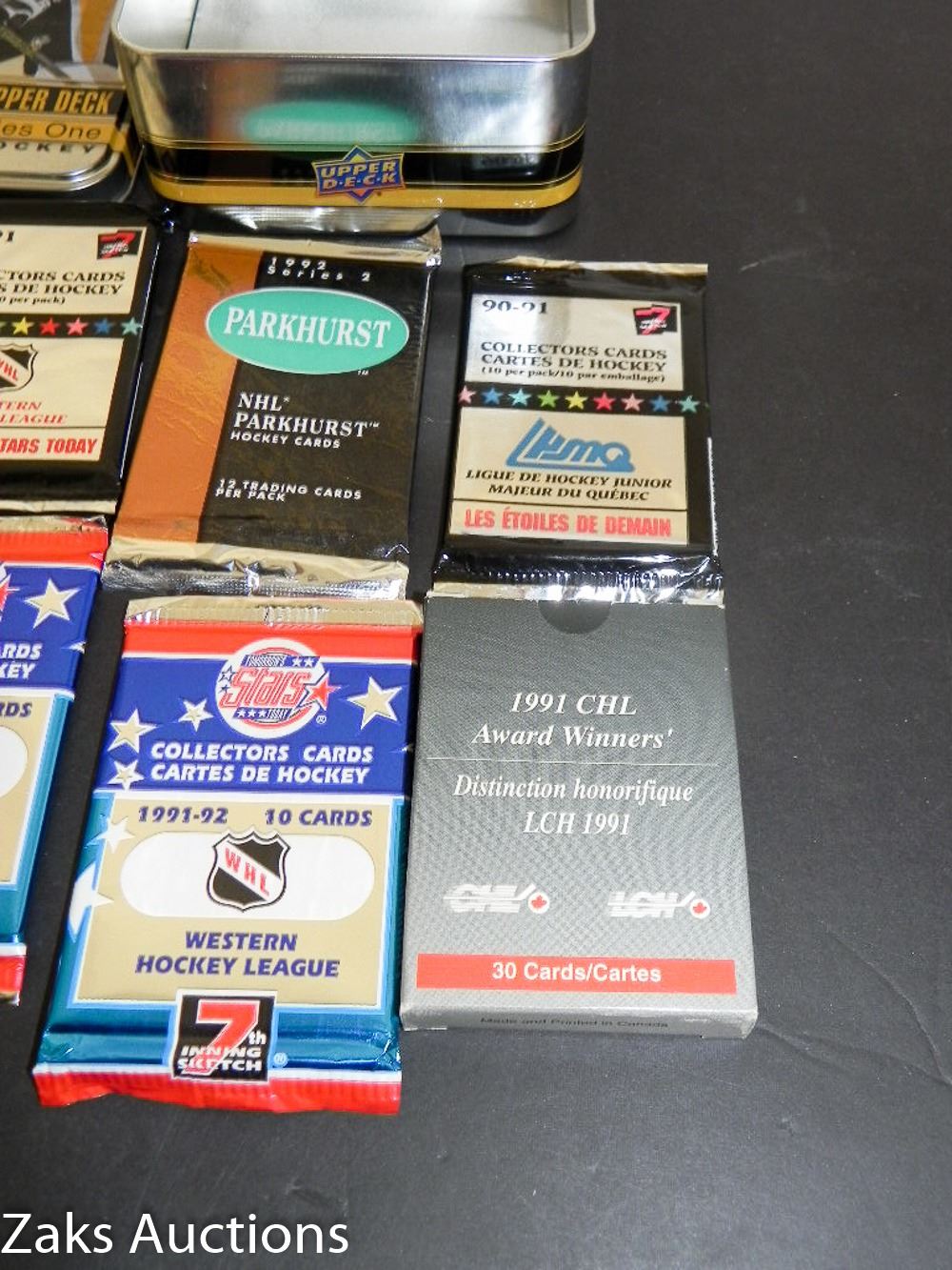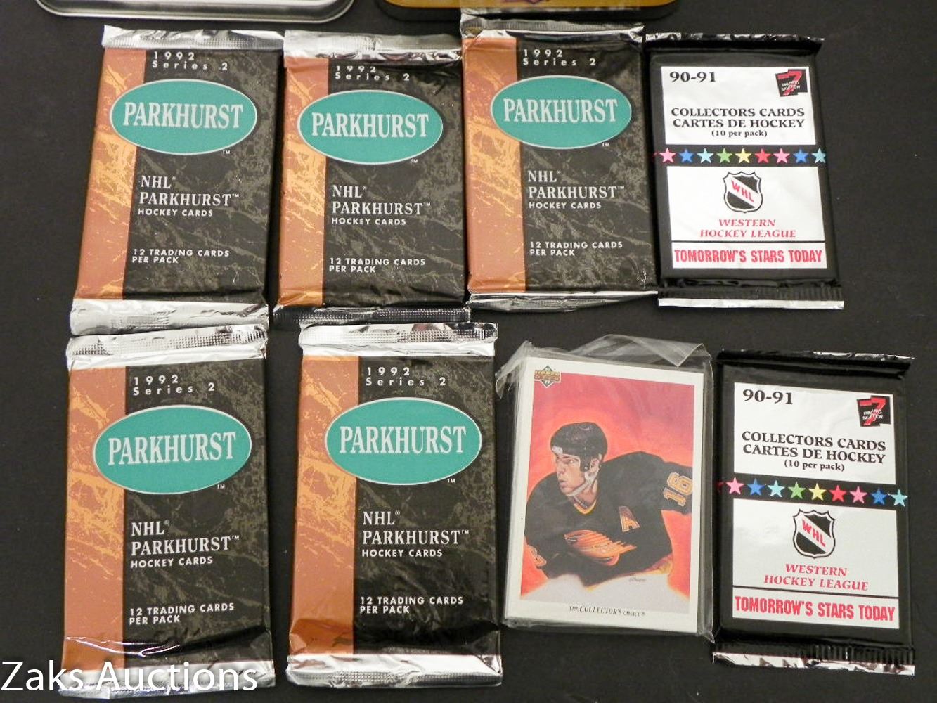 TIN OF MISC PACKS OF HOCKEY CARDS LOT 2