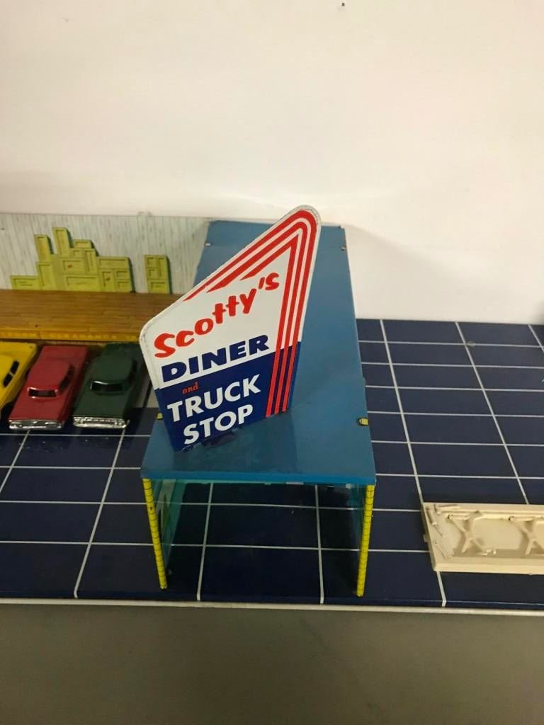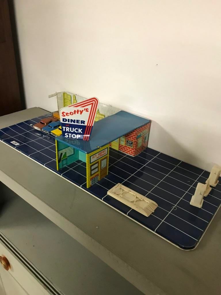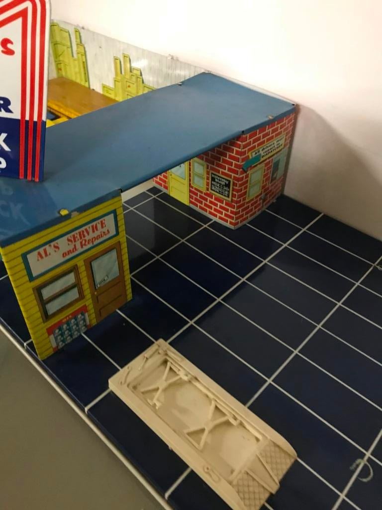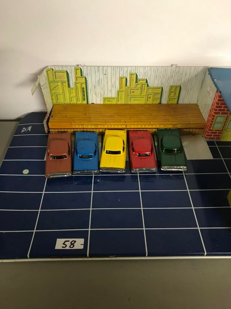 TIN SERVICE STATION, SUPERIOR, C/W 5 FRICTION CARS