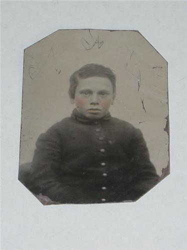 TIN TYPE PHOTOGRAPH OF A YOUNG BOY IN A CIVIL WAR UNIFORM (2 3/4" X 2 1/16")