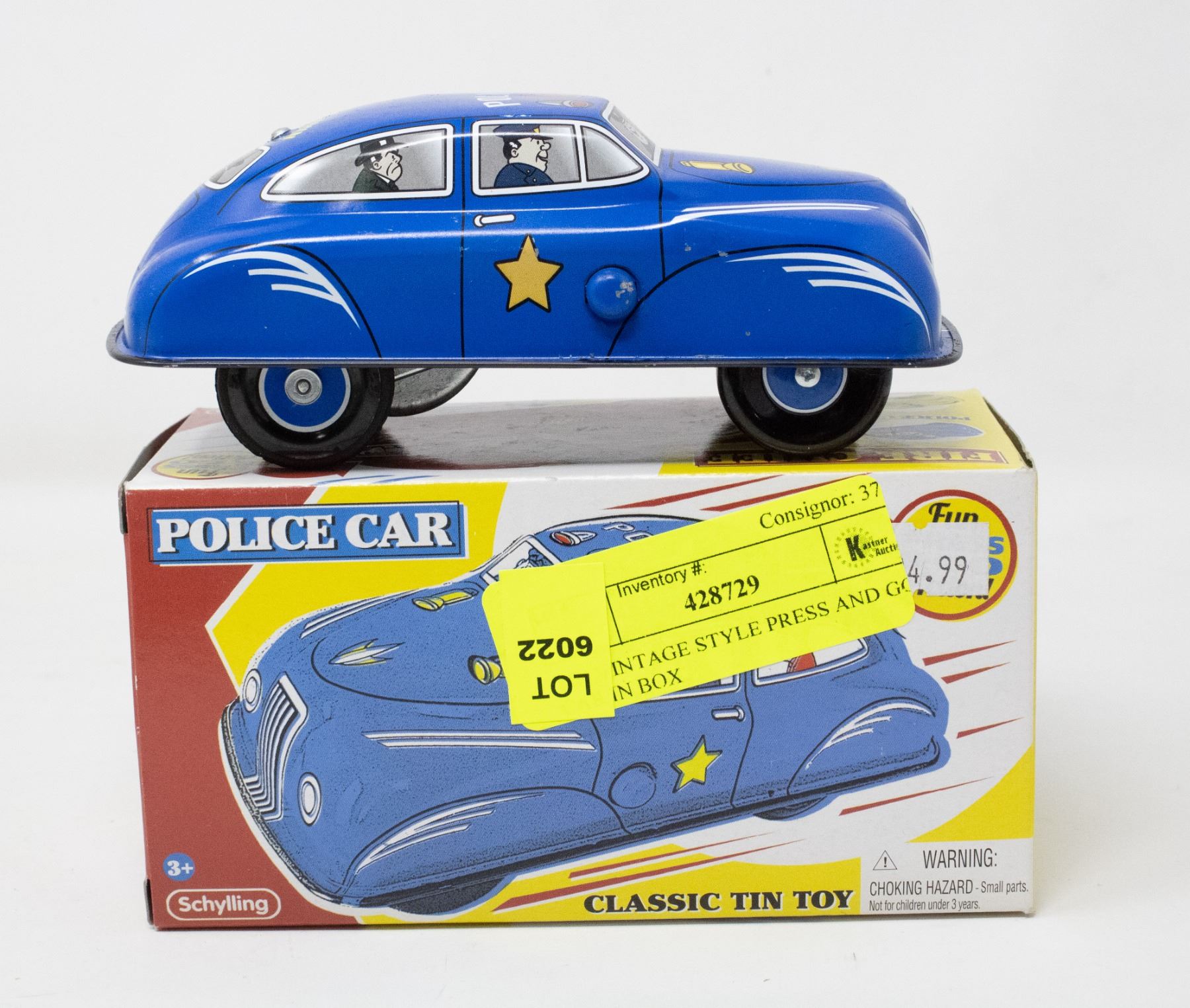 TIN VINTAGE STYLE PRESS AND GO CAR IN BOX