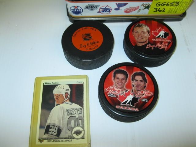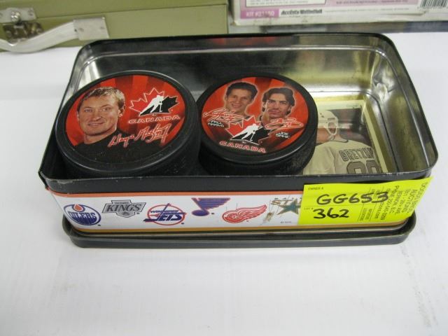 TIN W/ASST. TEAM CANADA PUCKS & WAYNE GRETZKY CARD