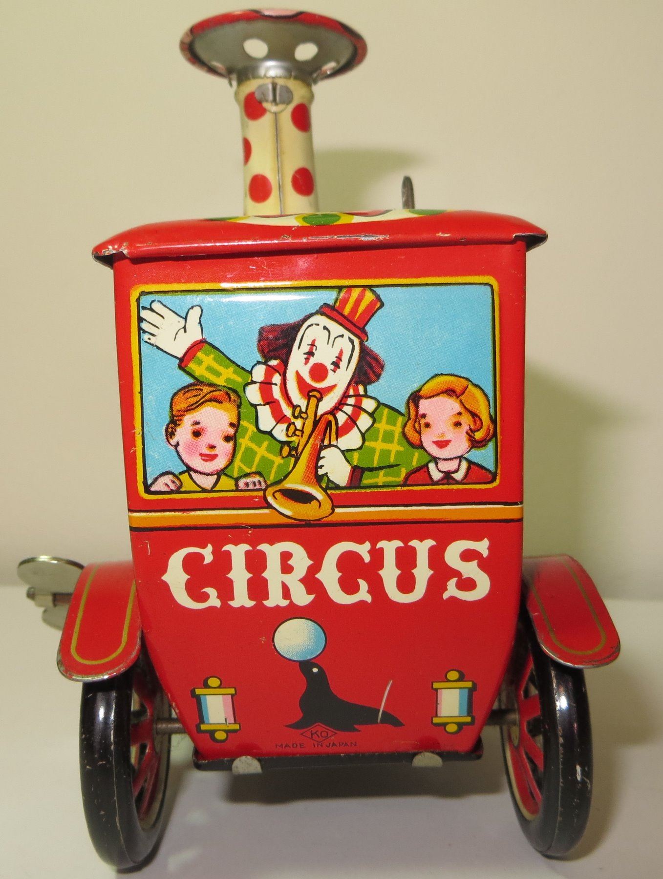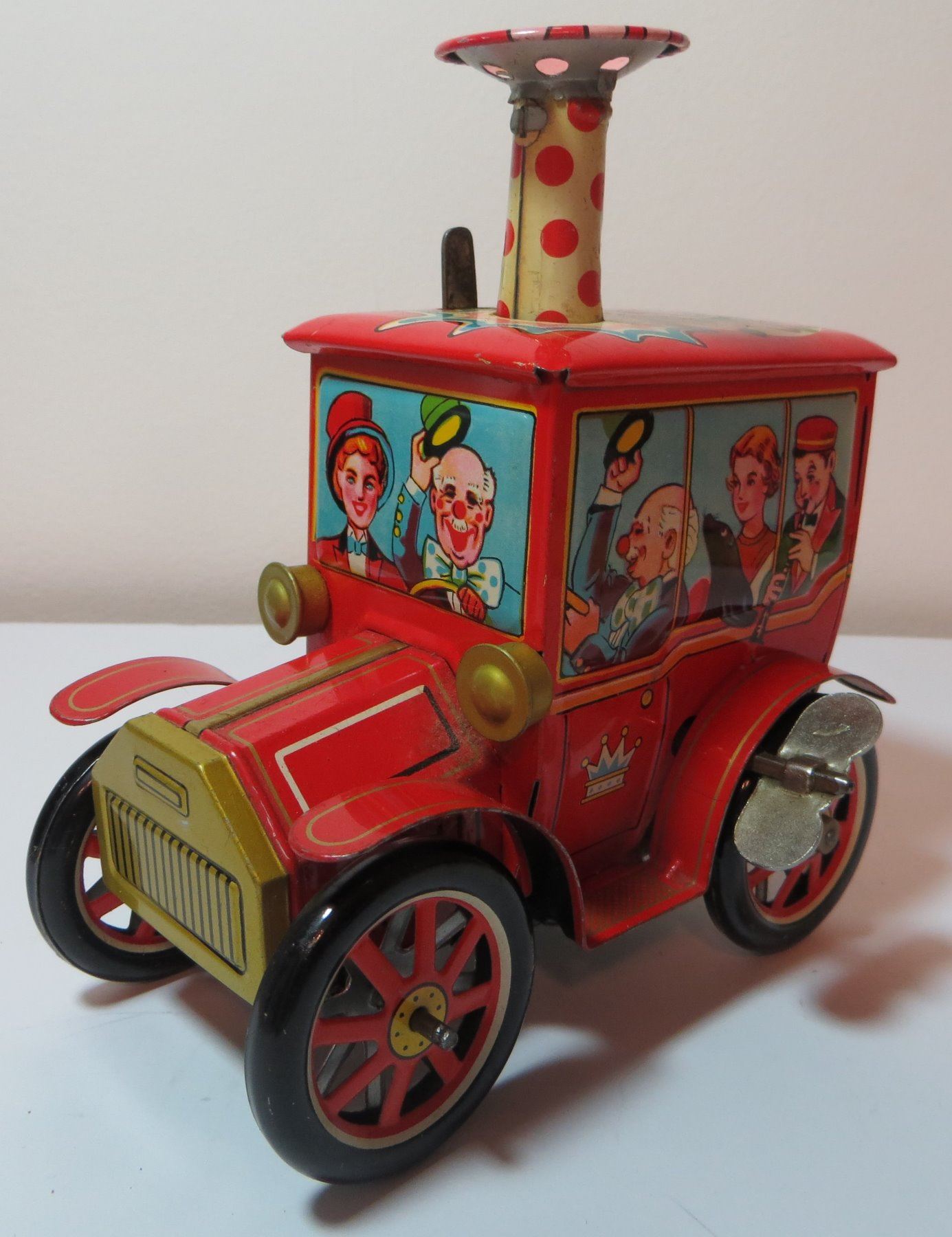 TIN WIND UP LITHOGRAPHY CIRCUS CAR (5.25" HIGH X 4.5" LONG X 2.75" WIDE) *BALL NOT INCLUDED*