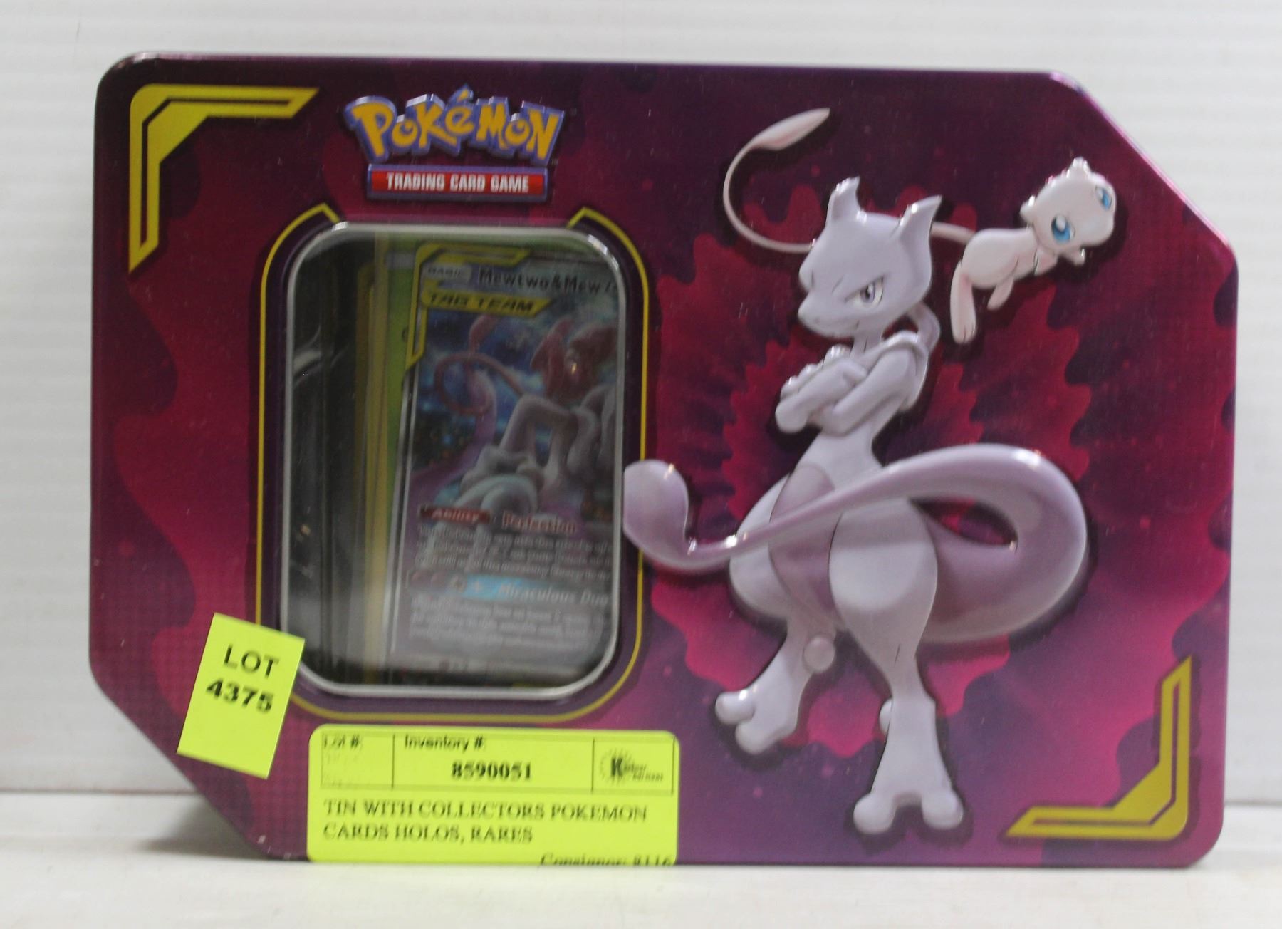 TIN WITH COLLECTORS POKEMON CARDS HOLOS, RARES