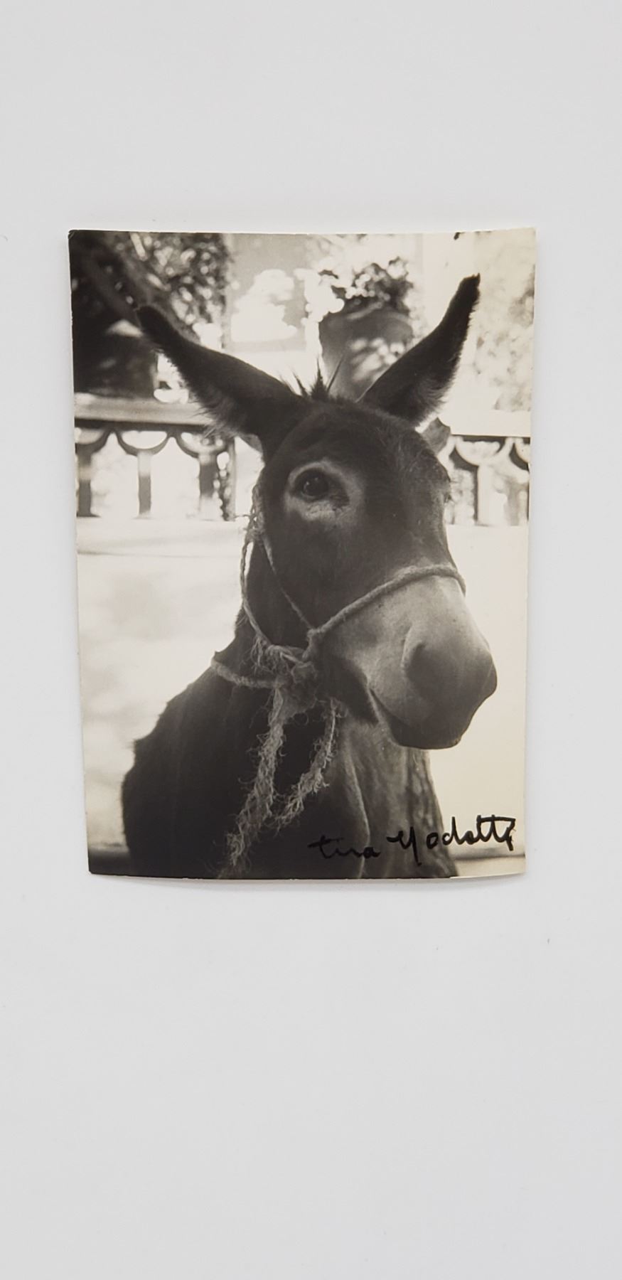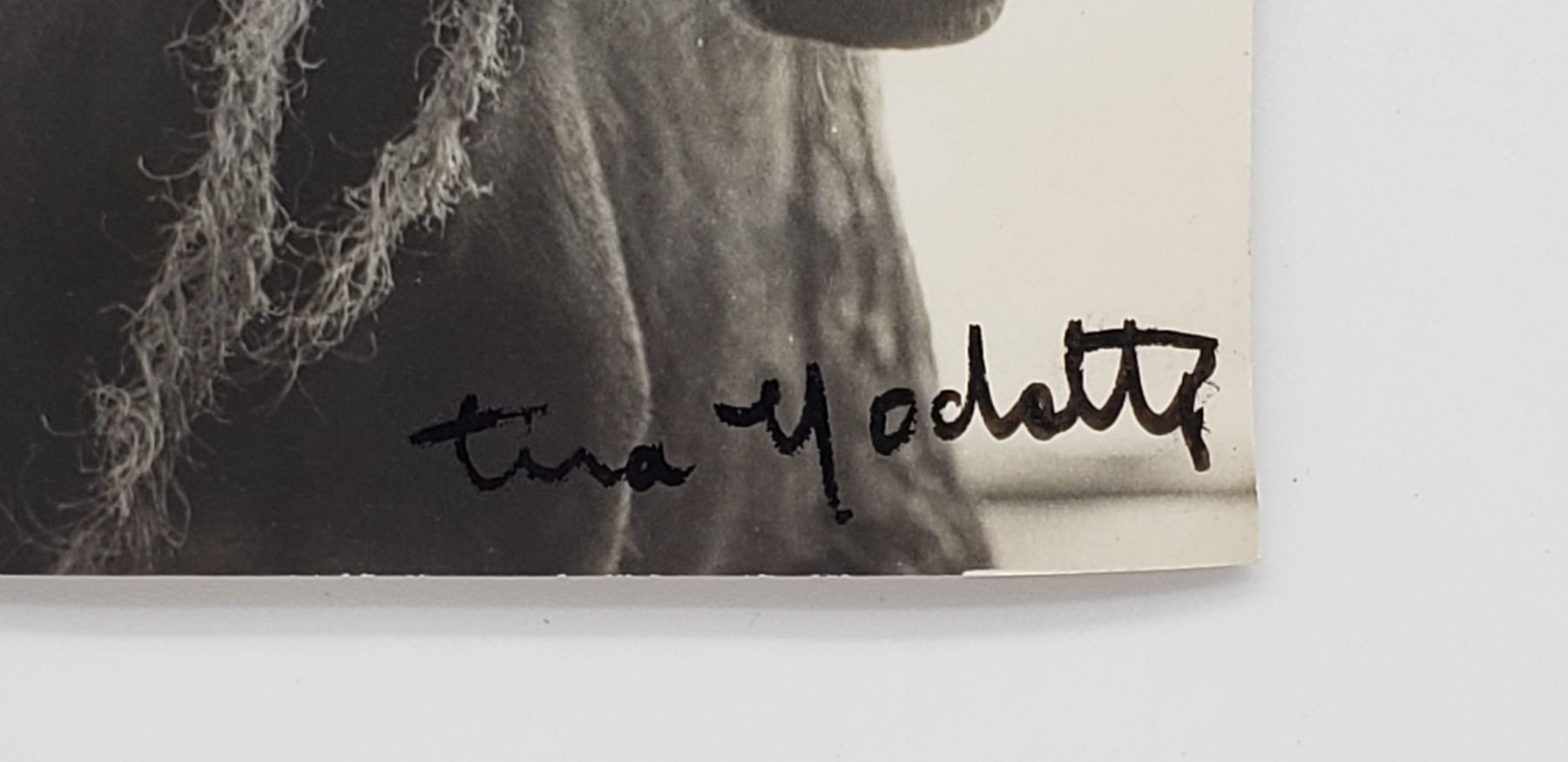 TINA MODOTTI ORIGINAL PHOTOGRAPH SIGNED. STUDIO STAMPED. 3 5/8" X 2 5/8"As a young girl in Italy her uncle, Pietro Modotti, maintained a photography studio. Later in the U.S., her father briefly ran a similar studio in San Francisco. While in Los Angeles, she met the photographer Edward Weston and his creative partner Margrethe Mather. It was through her relationship with Weston that Modotti developed as an important fine art photographer and documentarian. By 1921, Modotti was Weston's lover.[2] Ricardo Gómez Robelo became the head of Mexico's Ministry of Education's Fine Arts Department, and persuaded Robo to come to Mexico with a promise of a job and a studio.Robo left for Mexico in December 1921.[2] Perhaps unaware of his affair with Modotti, Robo took with him prints of Weston's, hoping to mount an exhibition of his and Weston's work in Mexico. While she was on her way to be with Robo, Modotti received word of his death from smallpox on February 9, 1922.[2] Devastated, she arrived two days after his death. In March 1922, determined to see Robo's vision realized, she mounted a two-week exhibition of Robo's and Weston's work at the National Academy of Fine Arts in Mexico City. She sustained a second loss with the death of her father, which forced her to return to San Francisco later in March 1922. In 1923, Modotti returned to Mexico City with Weston and his son Chandler, leaving behind Weston's wife Flora and their youngest three children.[5] She agreed to run Weston's studio free of charge in return for his mentoring her in photography.[6]Together they opened a portrait studio in Mexico City. Modotti and Weston quickly gravitated toward the capital's bohemian scene and used their connections to create an expanding portrait business. Together they found a community of cultural and political "avant-gardists", which included Frida Kahlo, Lupe Marín, Diego Rivera, and Jean Charlot.[7] In general, Weston was moved by the landscape and folk art of Mexico to create abstract works, while Modotti was more captivated by the people of Mexico and blended this human interest with a modernist aesthetic. Modotti also became the photographer of choice for the blossoming Mexican mural movement, documenting the works of José Clemente Orozco and Diego Rivera.[8] Between 1924 and 1928, Modotti took hundreds of photographs of Rivera's murals at the Secretariat of Public Education in Mexico City.[9] Modotti's visual vocabulary matured during this period, such as her formal experiments with architectural interiors, blooming flowers, urban landscapes, and especially in her many beautiful images of peasants and workers during the depression. In 1926, Modotti and Weston were commissioned by Anita Brenner to travel around Mexico and take photographs for what would become her influential book Idols Behind Altars.[7] The relative contributions of Modotti and Weston to the project has been debated. Weston's son Brett, who accompanied the two on the project, indicated that the photographs were taken by Edward Weston.In 1925, Modotti joined International Red Aid, a Communist organization.[7] In November 1926, Weston left Mexico and returned to California.[5] During this time Modotti met several political radicals and Communists, including three Mexican Communist Party leaders who would all eventually become romantically linked with her: Xavier Guerrero, Julio Antonio Mella, and Vittorio Vidali.Starting in 1927, a much more politically active Modotti (she joined the Mexican Communist Party that year) found her focus shifting and more of her work becoming politically motivated.[10] Around that time her photographs began appearing in publications such as Mexican Folkways, Forma, and the more radically motivated El Machete, the German Communist Party's Arbeiter-Illustrierte-Zeitung (AIZ), and New Masses.[3]Mexican photographer Manuel Álvarez Bravo divided Modotti's career as a photographer into two distinct categories: "Romantic" and "Revolutionary", with the former period including her time spent as Weston's darkroom assistant, office manager and, finally, creative partner. Her later works were the focus of her one-woman retrospective exhibition at the National Library in December 1929, which was advertised as "The First Revolutionary Photographic Exhibition In Mexico".