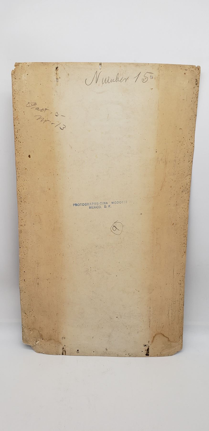 Tina Modotti Original Photograph Print Number 15 Studio Stamped Hand Signed Signature Piece is 19 1/4" x 11 1/2" All items Located in in Hollywood Florida Warehouse For Shipping Call today for quote they have item numbers and Pak Mail is available for all your custom packaging and shipping needs. We can package, palletize, crate, insure and ship to any Domestic or International location. All packaging and shipping fees must be paid in full before shipment is released. On international shipments, consignee is responsible for all Duties, Taxes, Customs Clearance or any destination fees that apply. Please visit our website @ www.pakmail.com/us770 for contact information or to get a quote. (Let us know you are a winning bidder from the Puckett auction so we can correctly arrange pick up for your item