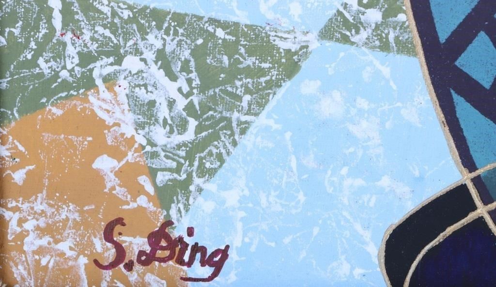 Ting Shao Kuang (Shaoguang Ding) (1939-current, Chinese-American) original acrylic painting in the manner of. This painting is an original piece painted by an unknown artist in the same style and delicacy as Ting Shao Kuang. Ting Shao Kuang is an American-Chinese figurative painter and printmaker. Best known for his contribution to the Yunnan Art School style. His calligraphic works, paintings, and handcrafted serigraphs on paper, often featured a stylized woman surrounded by vibrant abstractions.