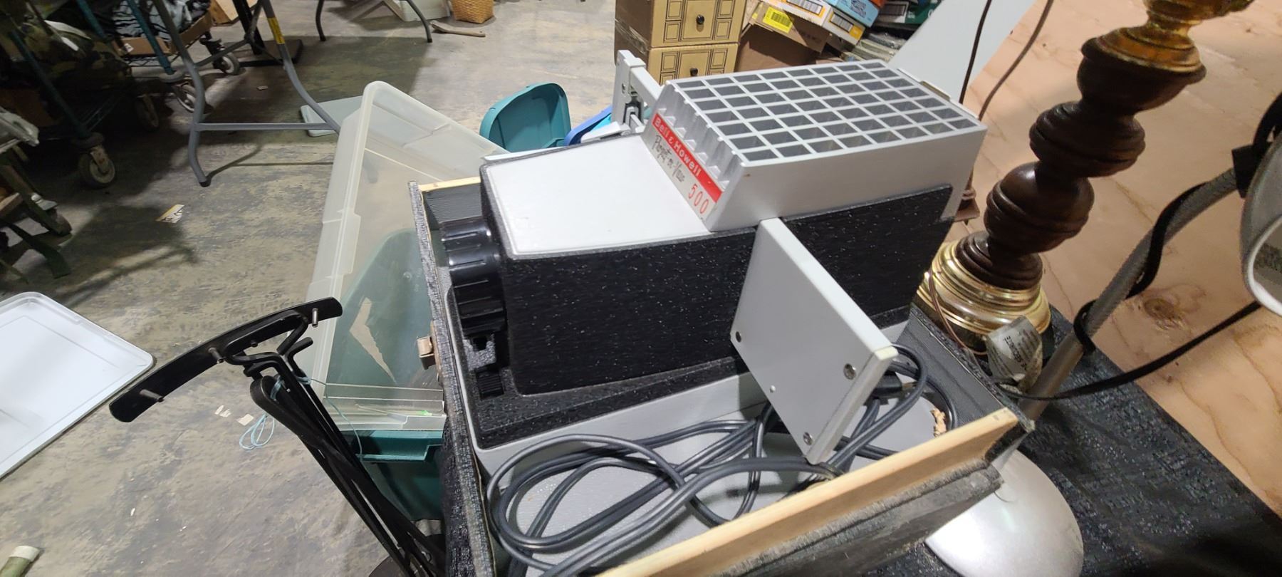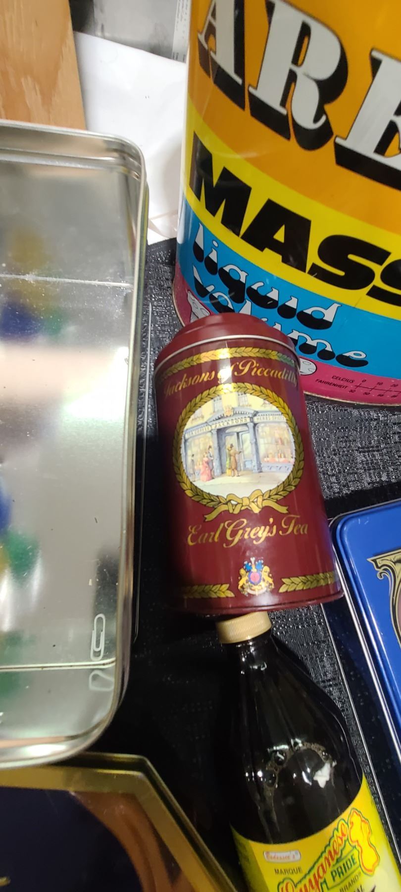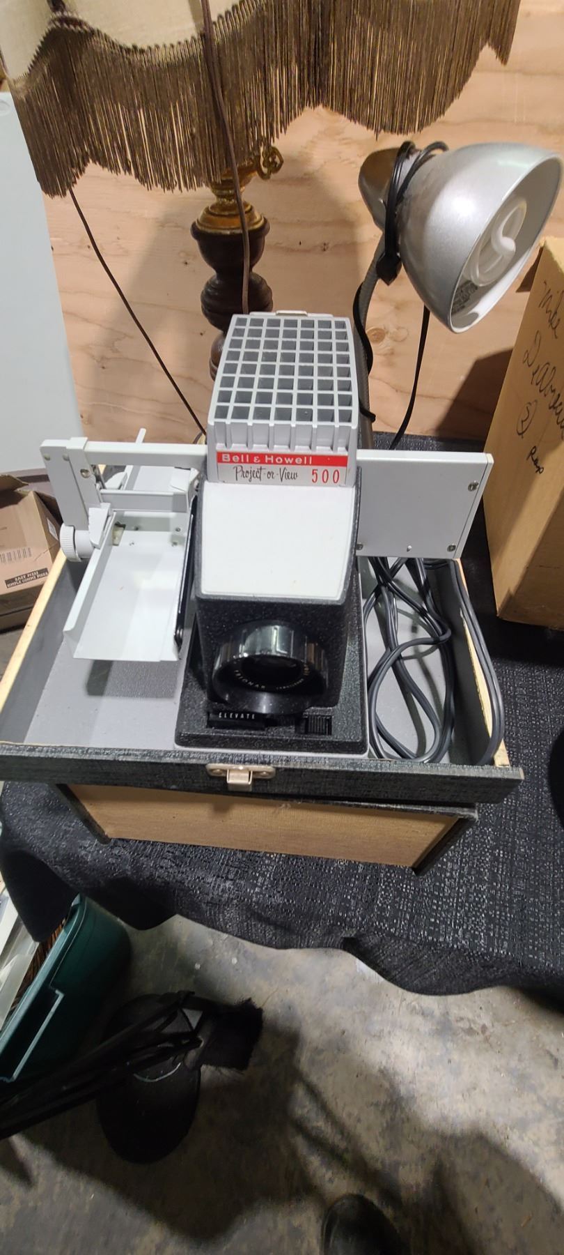 TINS, VANILA EXTRACT, SLIDE REEL PROJECTOR, LAMPS