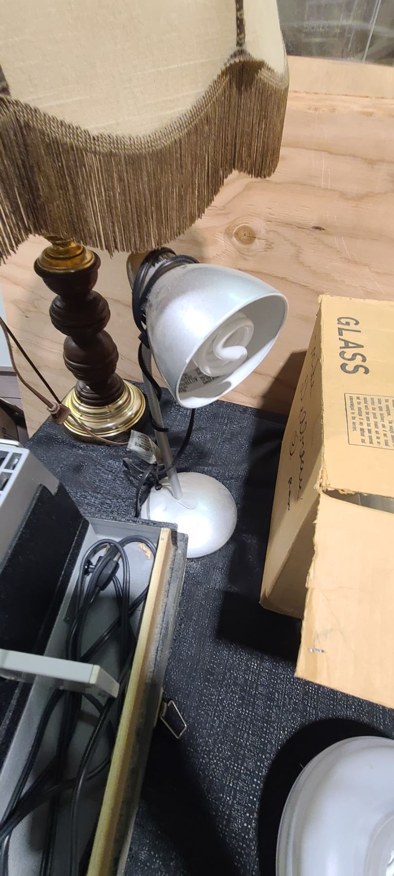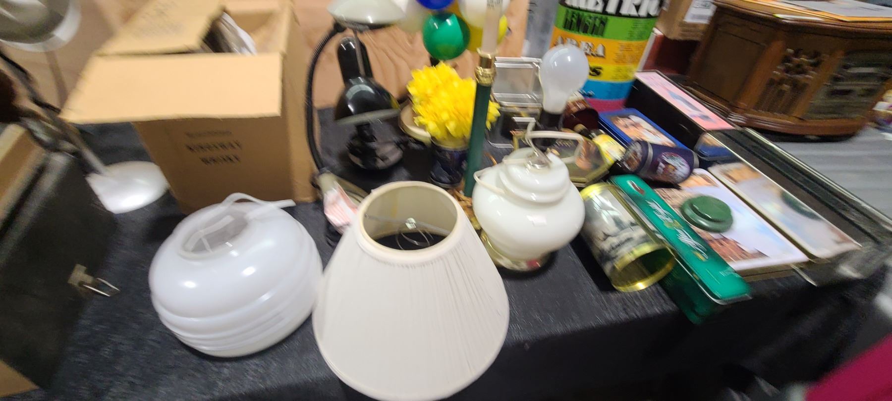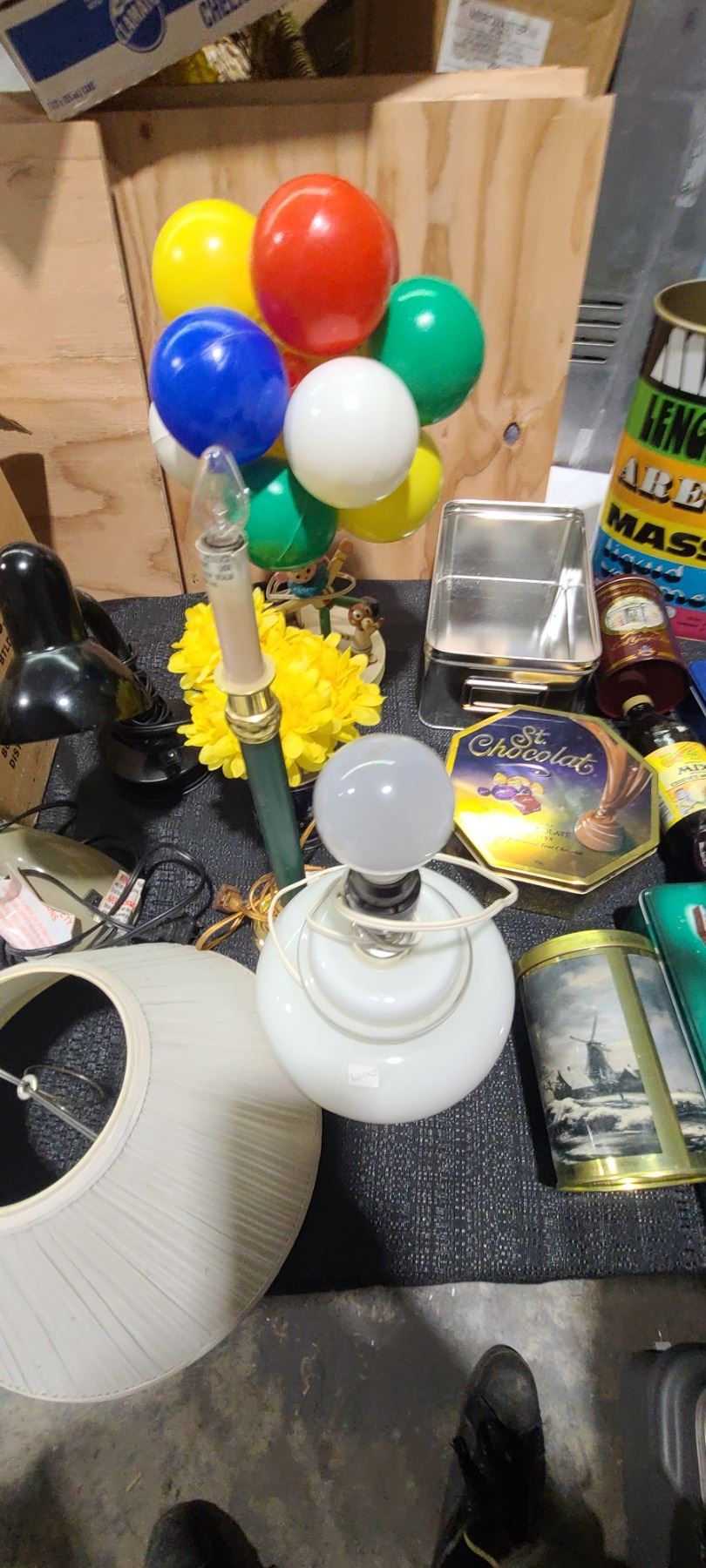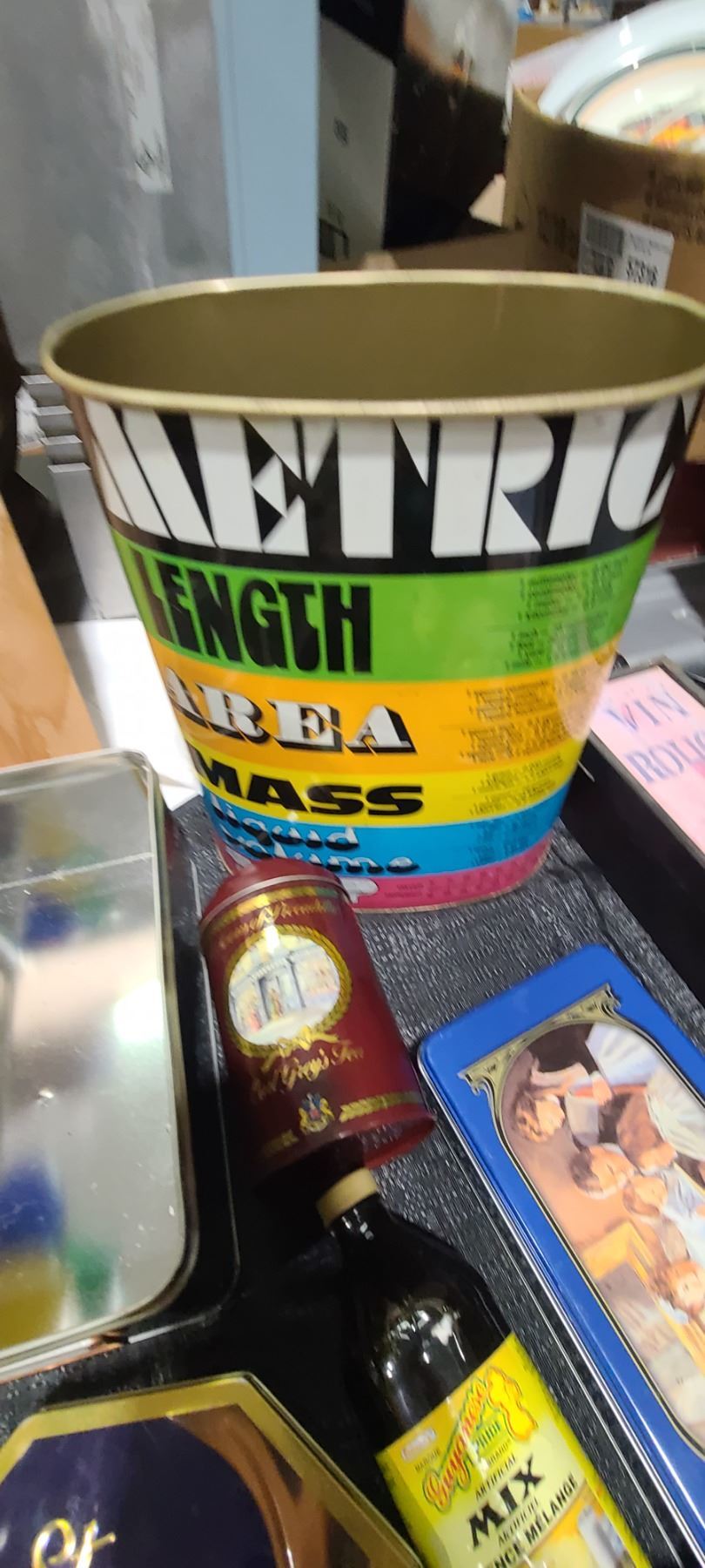 TINS, VANILA EXTRACT, SLIDE REEL PROJECTOR, LAMPS