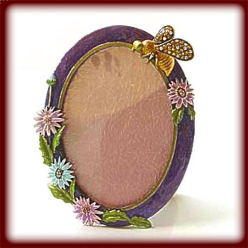 TINY OVAL PHOTO FRAME 24K GOLD & CRYSTALS PURPLE