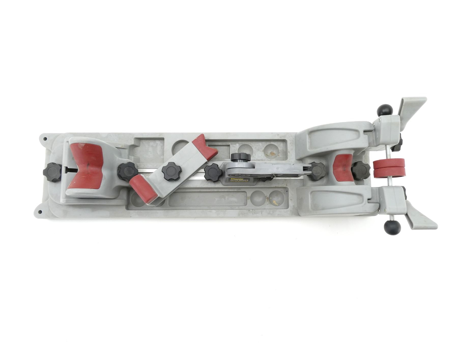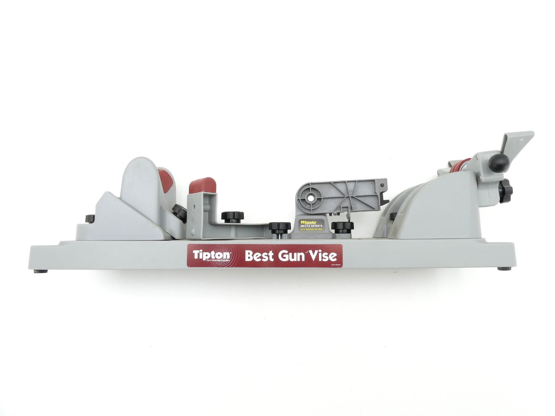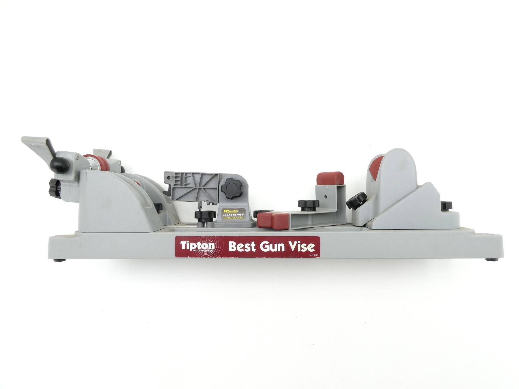 (1) GUN VISE, POLYMER / RUBBER CONSTRUCTION, WITH AR-15 MAG WELL BLOCK AND SHORT & LONG SUPPORT BLOCKS, APPEARS COMPLETE, SHOWS WEAR & TEAR / USE MARKS, APPROX. 31.75" X 7.5" X 7.75". SEE PHOTOS.