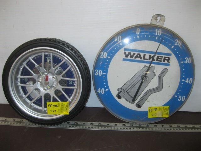 TIRE CLOCK & A WALKER MUFFLER THERMOMETER