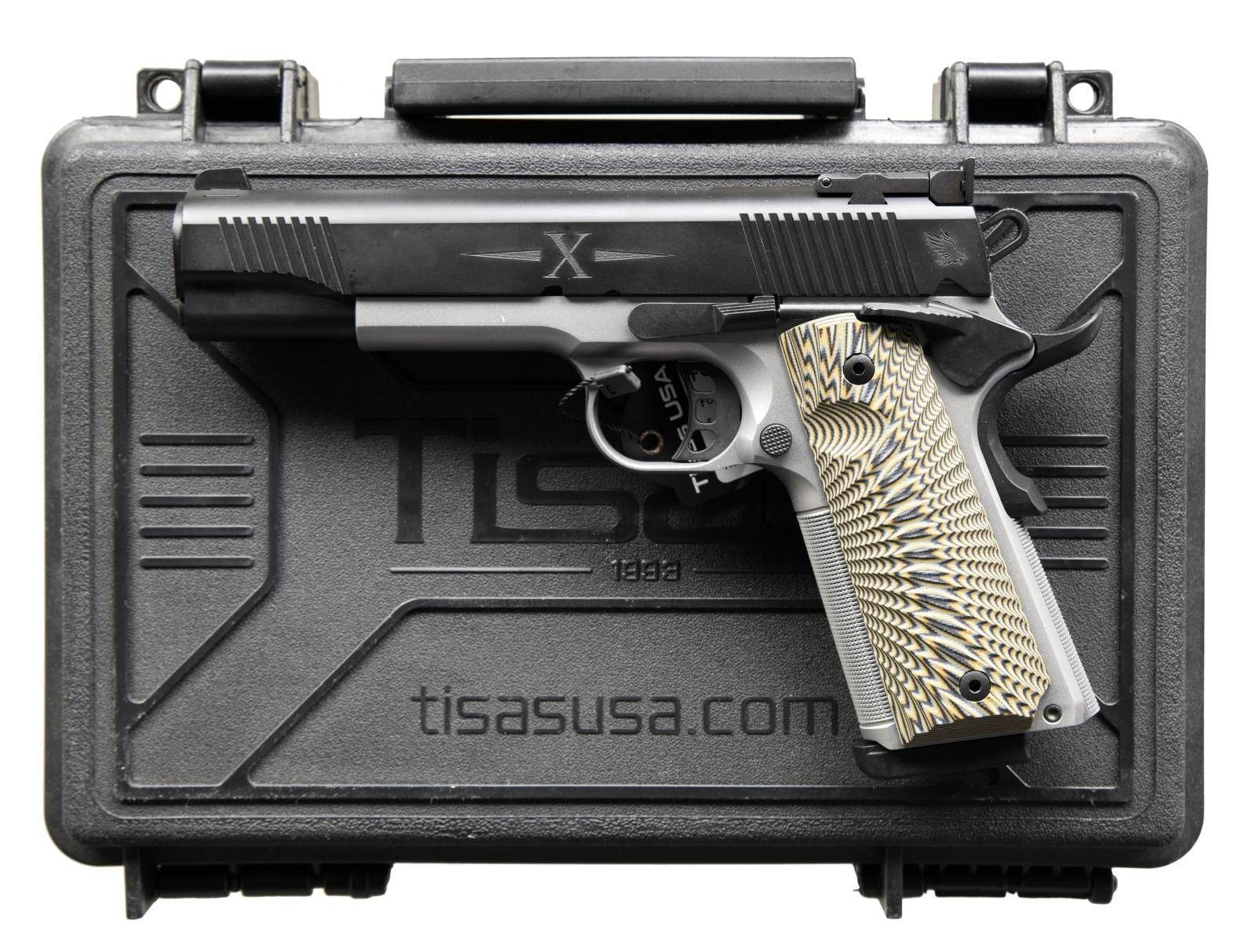 Cal. 10mm. S# T0620-22DA01081. Bbl. 5". Serrated blade front sight. Adjustable rear sight. Matte black slide w/ front & rear serrations. Extended ambi safety. Extended beavertail grip safety. Stainless frame w/ checkered straps. G10 grips. MAGS: 2-8 rd. UNATTACHED ACCESSORIES: matching numbered factory hardcase w/ cleaning rod, manual, trigger lock, bore brush, & paperwork. CONDITION: all aspects near new, in the box w/ factory hang tag present on trigger guard. PROVENANCE: the Collection of Gun Sport Ltd owned by Jon R. Thomas. (23-2823/MJC). MODERN. $500-700.