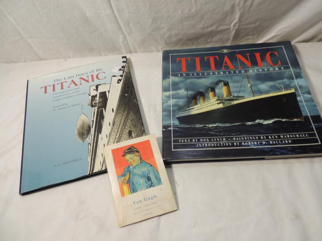 THE LAST DAYS OF THE TITANIC PHOTOGRAPHS AND MEMENTOS OF THE TRAGIC MAIDEN VOYAGE. VAN GOGH ARLESSAINT REMY. AND TITANIC ILLUSTRATED HISTORY. AS SHOWN. SEE PHOTO FOR MORE DETAILS.