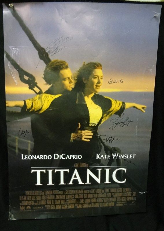TITANIC MOVIE POSTER 27x39 AUTOGRAPHED/SIGN LEONARDO DECAPRIO, KATE WINSLET,