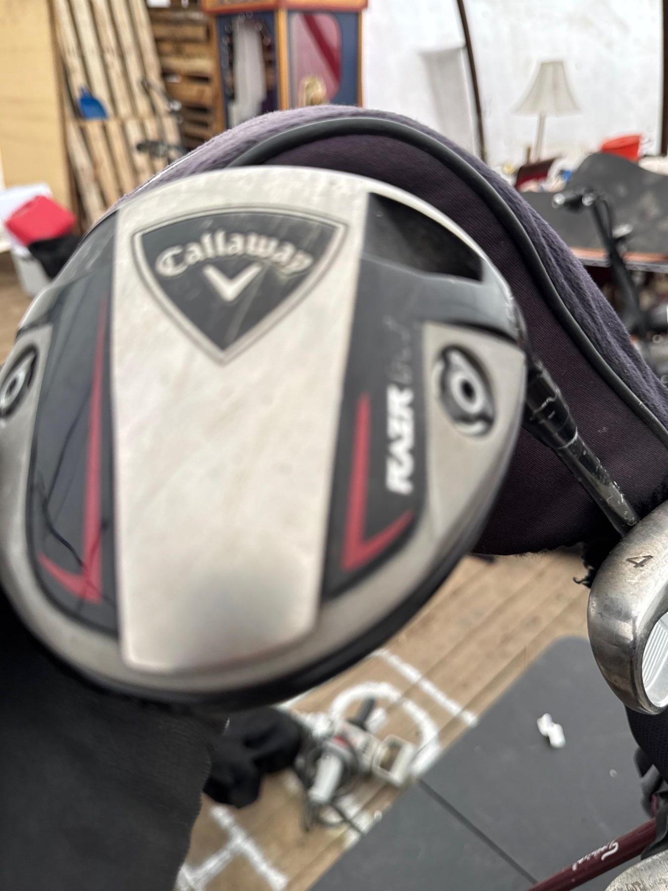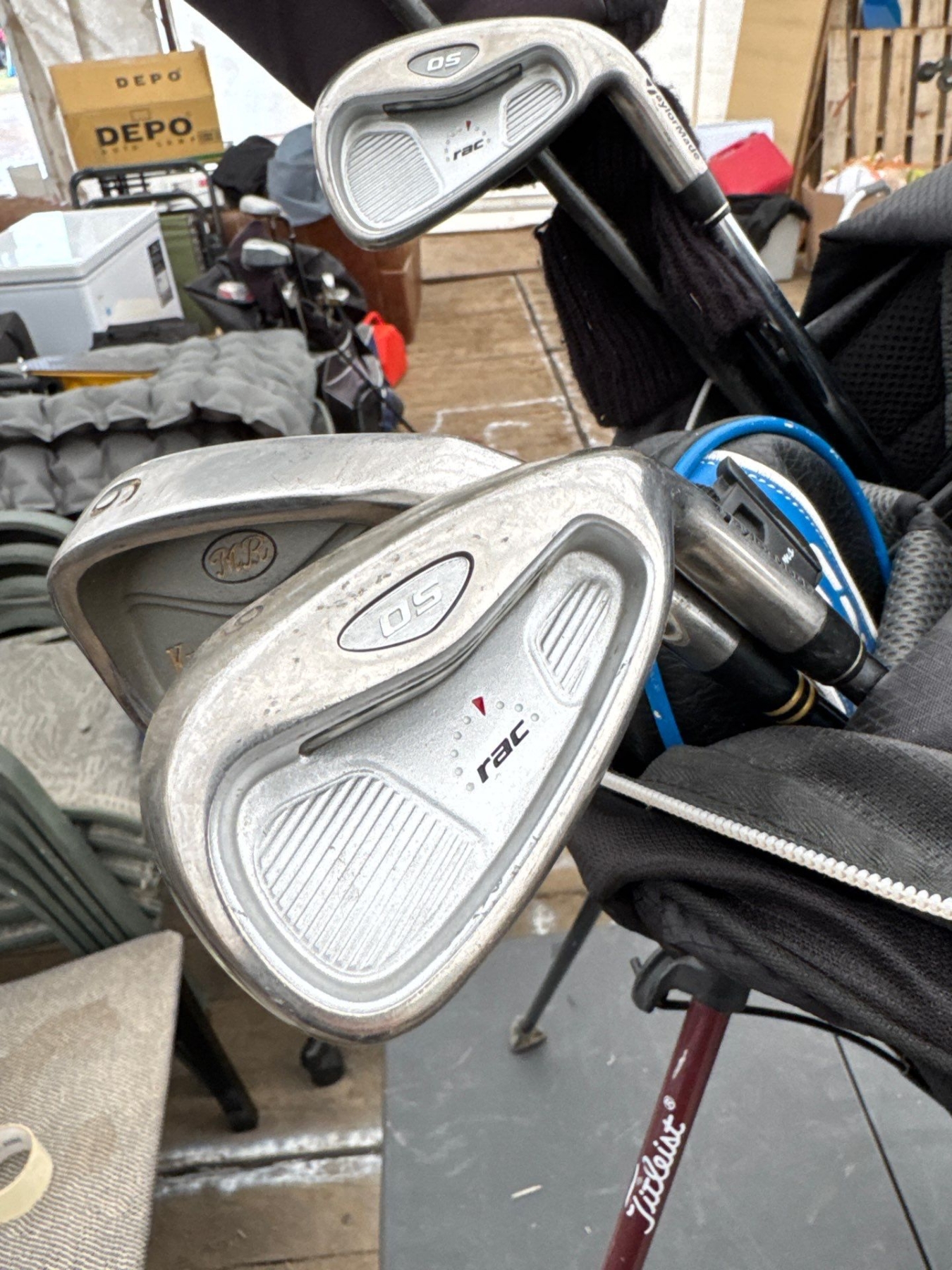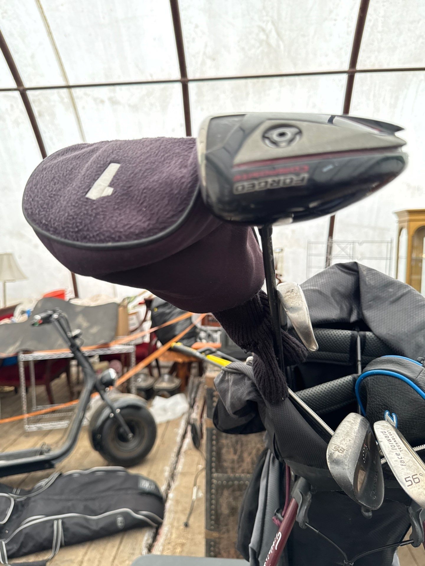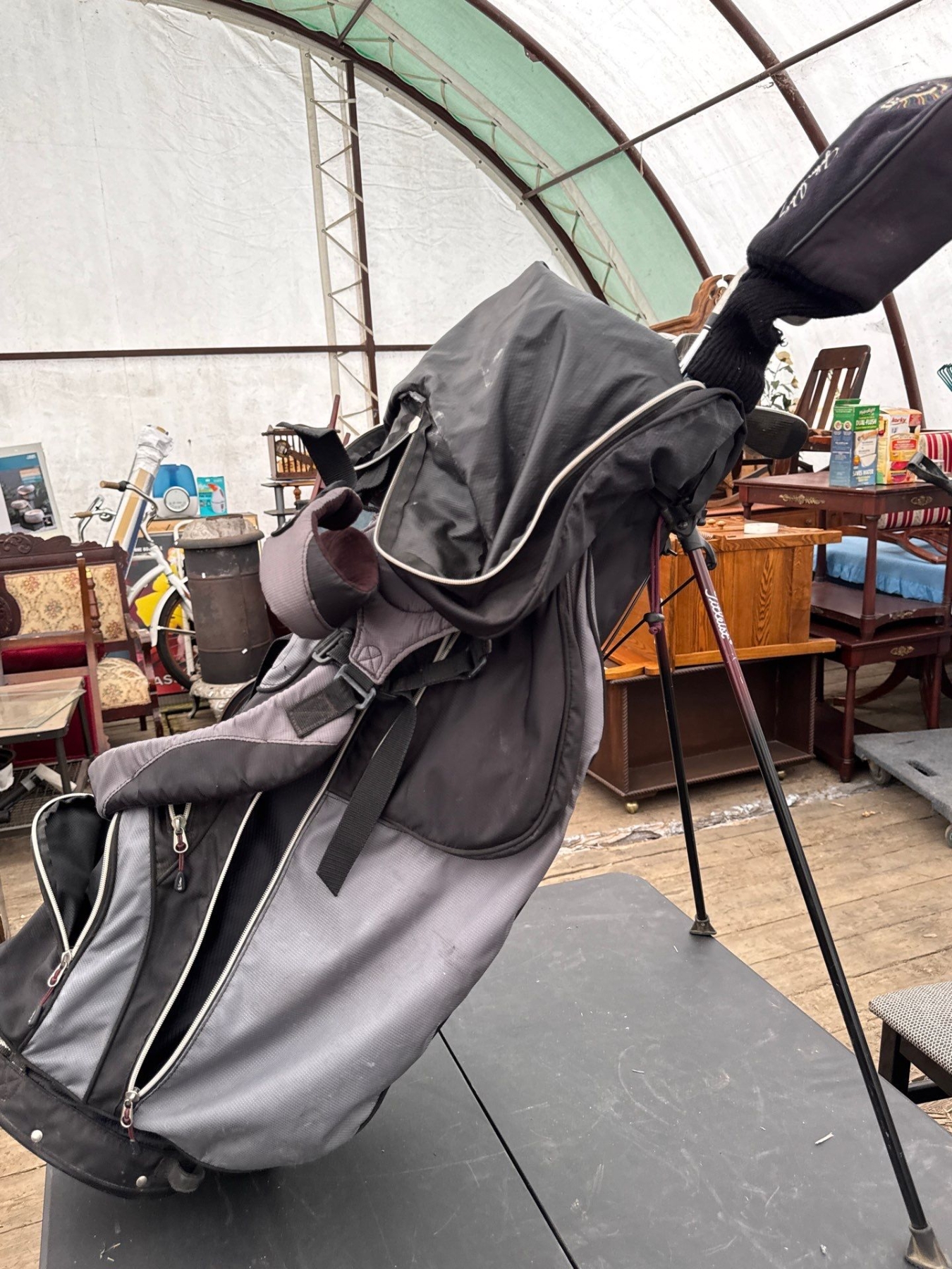 TITLIST GOLF BAG FULL OF CLUBS AND DRIVERS AND ACCESSORIES
