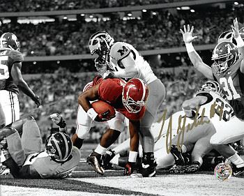 As a true freshman in 2012, TJ Yeldon played in all 14 games, sharing time with Eddie Lacy. In his first college game, Yeldon rushed for 111 yards and a touchdown. His season high for the year was 153 yards against Georgia in the 2012 SEC Championship Game. In the 2013 BCS Championship Game victory over Notre Dame, Yeldon ran for 110 yards and had one touchdown. Yeldon finished the season with 1,108 rushing yards on 175 carries and 12 touchdowns. After Lacy entered the 2013 NFL Draft, Yeldon became Alabama's starter his sophomore season in 2013. Yeldon led the team with 1,235 yards on 207 carries and 14 touchdowns. He was named first-team All-Southeastern Conference (SEC) selection. Yeldon shared carries with Derrick Henry his junior season in 2014. After his junior season, Yeldon entered the 2015 NFL Draft TJ Yeldon has hand signed this Alabama Crimson Tide 8x10 Photo. Bama Authentics Hologram and Certificate of Authenticity from Athlon Sports Collectibles.
