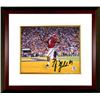 As a true freshman in 2012, TJ Yeldon played in all 14 games, sharing time with Eddie Lacy. In his first college game, Yeldon rushed for 111 yards and a touchdown. His season high for the year was 153 yards against Georgia in the 2012 SEC Championship Game. In the 2013 BCS Championship Game victory over Notre Dame, Yeldon ran for 110 yards and had one touchdown. Yeldon finished the season with 1,108 rushing yards on 175 carries and 12 touchdowns. After Lacy entered the 2013 NFL Draft, Yeldon became Alabama's starter his sophomore season in 2013. Yeldon led the team with 1,235 yards on 207 carries and 14 touchdowns. He was named first-team All-Southeastern Conference (SEC) selection. Yeldon shared carries with Derrick Henry his junior season in 2014. After his junior season, Yeldon entered the 2015 NFL Draft TJ Yeldon has hand signed this Alabama Crimson Tide 8x10 Photo. Bama Authentics Hologram and Certificate of Authenticity from Athlon Sports Collectibles. Custom White Mat and Premium Mahogany Color Framed as shown.