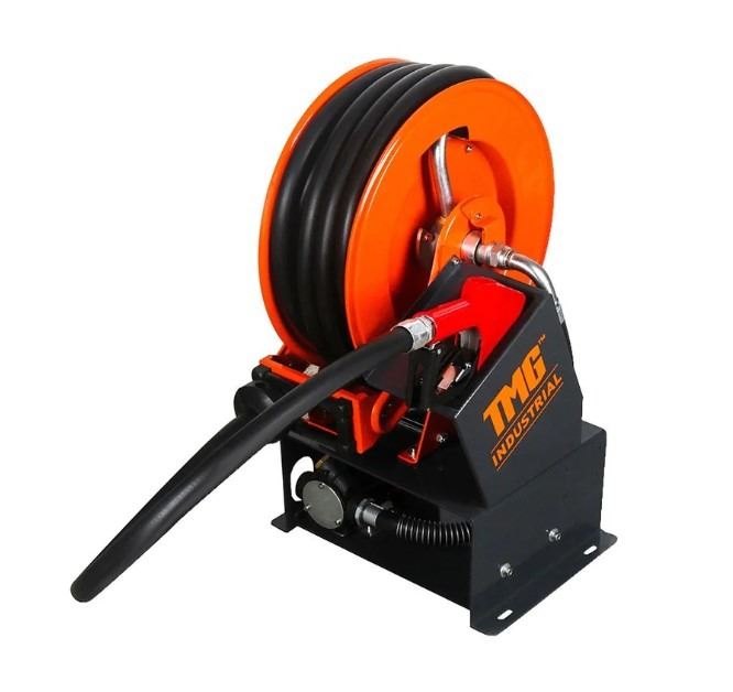 INDUSTRIAL PORTABLE DIESEL TRANSFER PUMP W/49' HOSE REEL, AUTO SHUT OFF, DC 12-VOLT, 15 GPM, TMG-DFP10