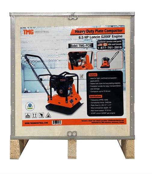 Powered by an air-cooled, single cylinder LONCIN G200F gas engine that can produce up to 6.5 HP at 3600 RPM. This engine also has a special automatic oil alert that stops it from operating and notifies the user when the oil falls below a certain level. That means built-in protection and a long-lasting engine despite the tough work that you& rsquo;ll demand out of this machine. The vibratory motion provides a self-propelling action that can cover up to 4320 square feet per hour depending on the surface material, and the 22& rdquo; x 17& rdquo; vibrating plate has built in rubber shock absorbers for accuracy and sustained comfort. The TMG-PC90 is hardworking like you and won& rsquo;t quit until the job is done. & nbsp;