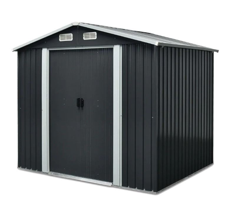 8' X 10' GALVANIZED APEX ROOF METAL SHED, 49'' SLIDING DOOR, 29 GA CORRUGATED METAL, 67'' EDGE HEIGHT, TMG-MS0810