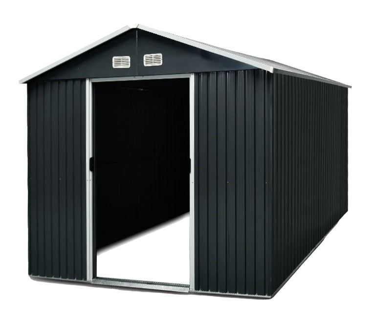 8' X 10' GALVANIZED APEX ROOF METAL SHED, 49'' SLIDING DOOR, 29 GA CORRUGATED METAL, 67'' EDGE HEIGHT, TMG-MS0810 **ALL ITEMS MUST BE REMOVED BY 5PM SATURDAY, JUNE 1ST 2024. ALL REMAINING ITEMS WILL BE SUBJECT TO A $6.00 PER DAY STORAGE CHARGE. ANY ITEMS REMAINING AFTER MONDAY, JUNE 17TH 2024 WILL BE CONSIDERED FORFEITED. NO REFUNDS WILL BE ISSUED FOR FORFEITED ITEMS. TO SCHEDULE A PICK UP APPOINTMENT CLICK HERE