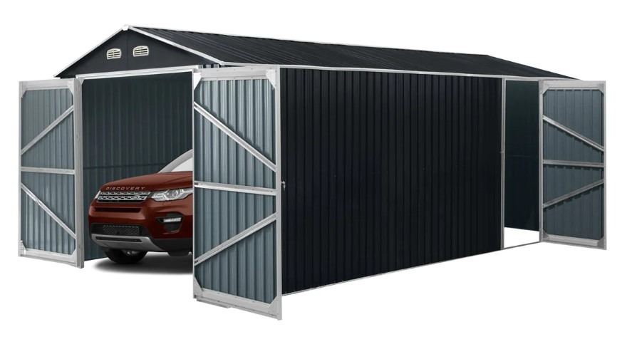 INDUSTRIAL 10' X 20' METAL GARAGE SHED WITH DOUBLE FRONT DOORS, 7'8'' PEAK HEIGHT, SIDE ENTRY DOOR, 185 SQ-FT FLOOR SPACE, TMG-MS1020A
