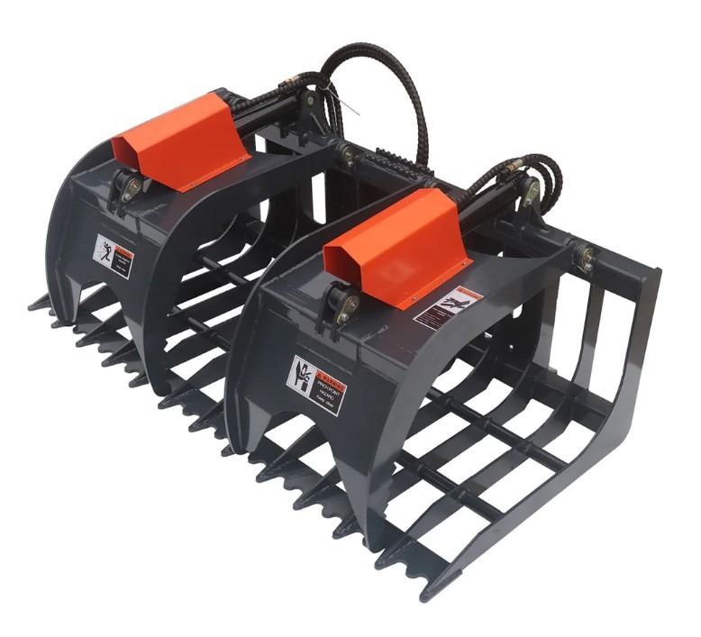 INDUSTRIAL 72'' SKID STEER ROCK SKELETON GRAPPLE ATTACHMENT, UNIVERSAL MOUNT, 36'' ARM OPENING, 6'' TINE SPACING, 2500 LB WEIGHT CAPACITY, TMG-SG72