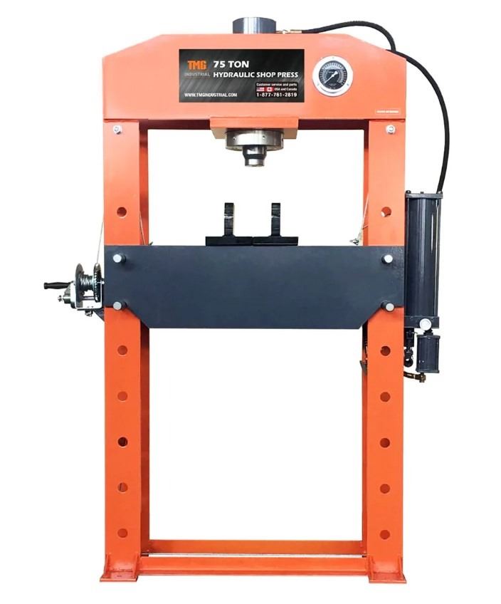 INDUSTRIAL 75 TON CAPACITY HYDRAULIC SHOP PRESS, HEAVY DUTY PRESSING, FULLY WELDED H-FRAME, AIR & MANUAL DUAL OPERATION, TMG-SP75 **ALL ITEMS MUST BE REMOVED BY 5PM SATURDAY, JUNE 1ST 2024. ALL REMAINING ITEMS WILL BE SUBJECT TO A $6.00 PER DAY STORAGE CHARGE. ANY ITEMS REMAINING AFTER MONDAY, JUNE 17TH 2024 WILL BE CONSIDERED FORFEITED. NO REFUNDS WILL BE ISSUED FOR FORFEITED ITEMS. TO SCHEDULE A PICK UP APPOINTMENT CLICK HERE