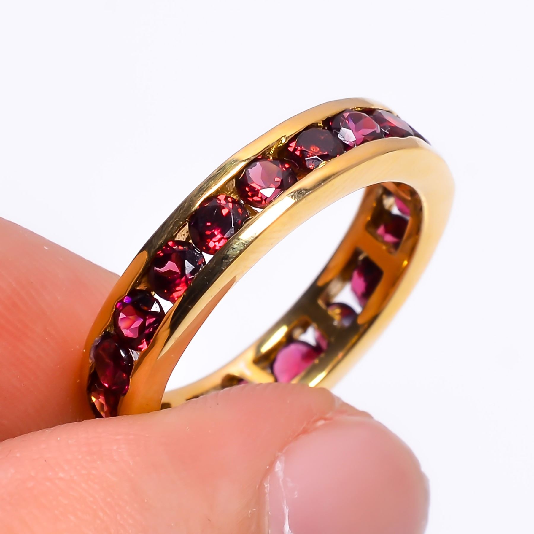 SILVER GARNET(2.9CT) GOLD PLATED SILVER RING (~WEIGHT 4.5G), SUGGESTED RETAIL VALUE $180