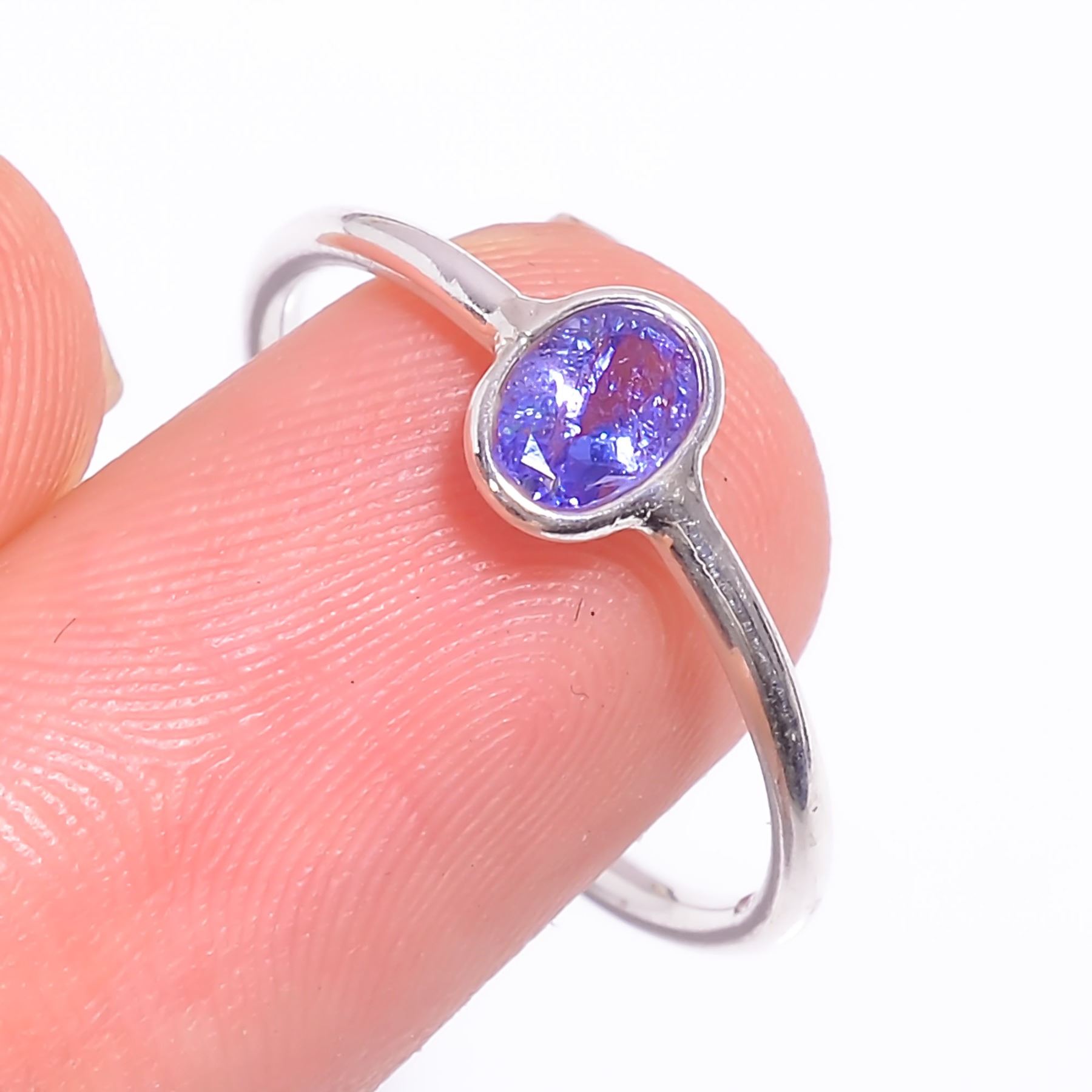 SILVER TANZANITE(0.45CT) RHODIUM PLATED RING (~WEIGHT 1.1G), SUGGESTED RETAIL VALUE $60