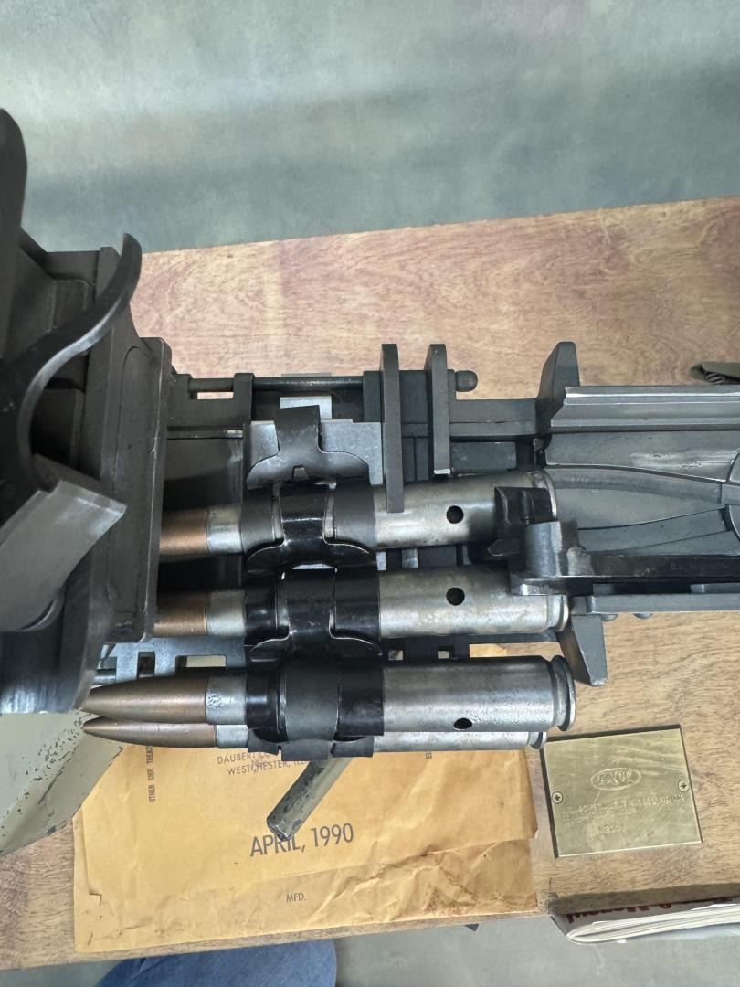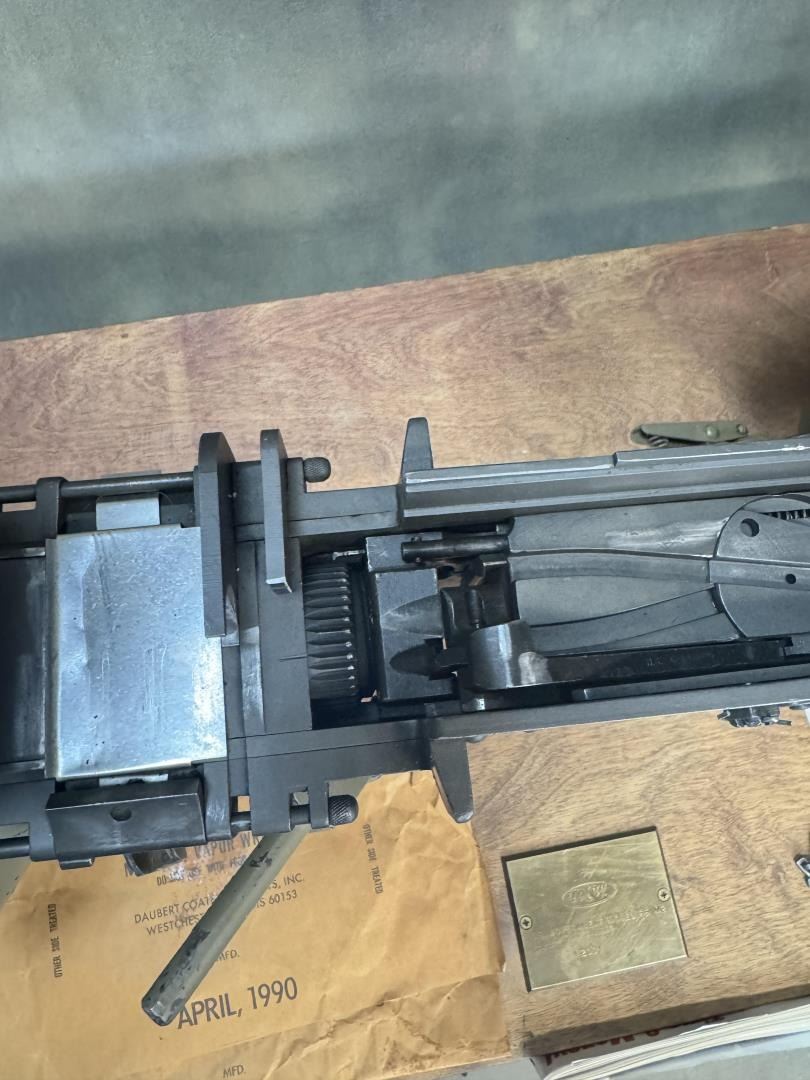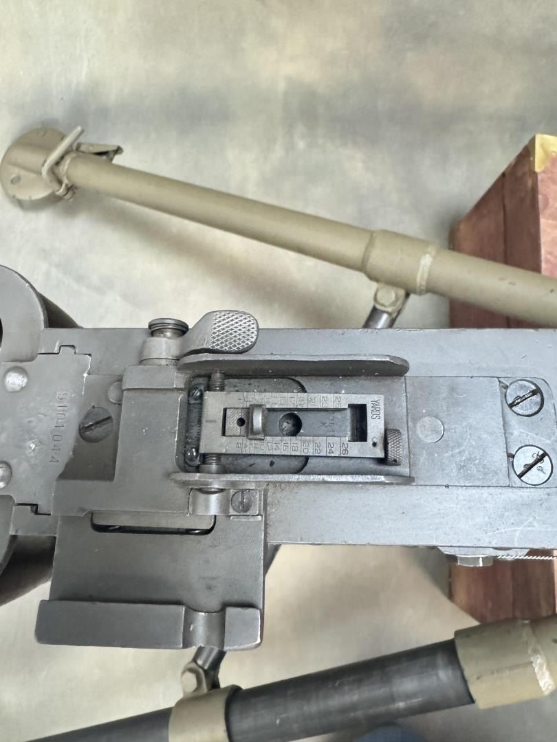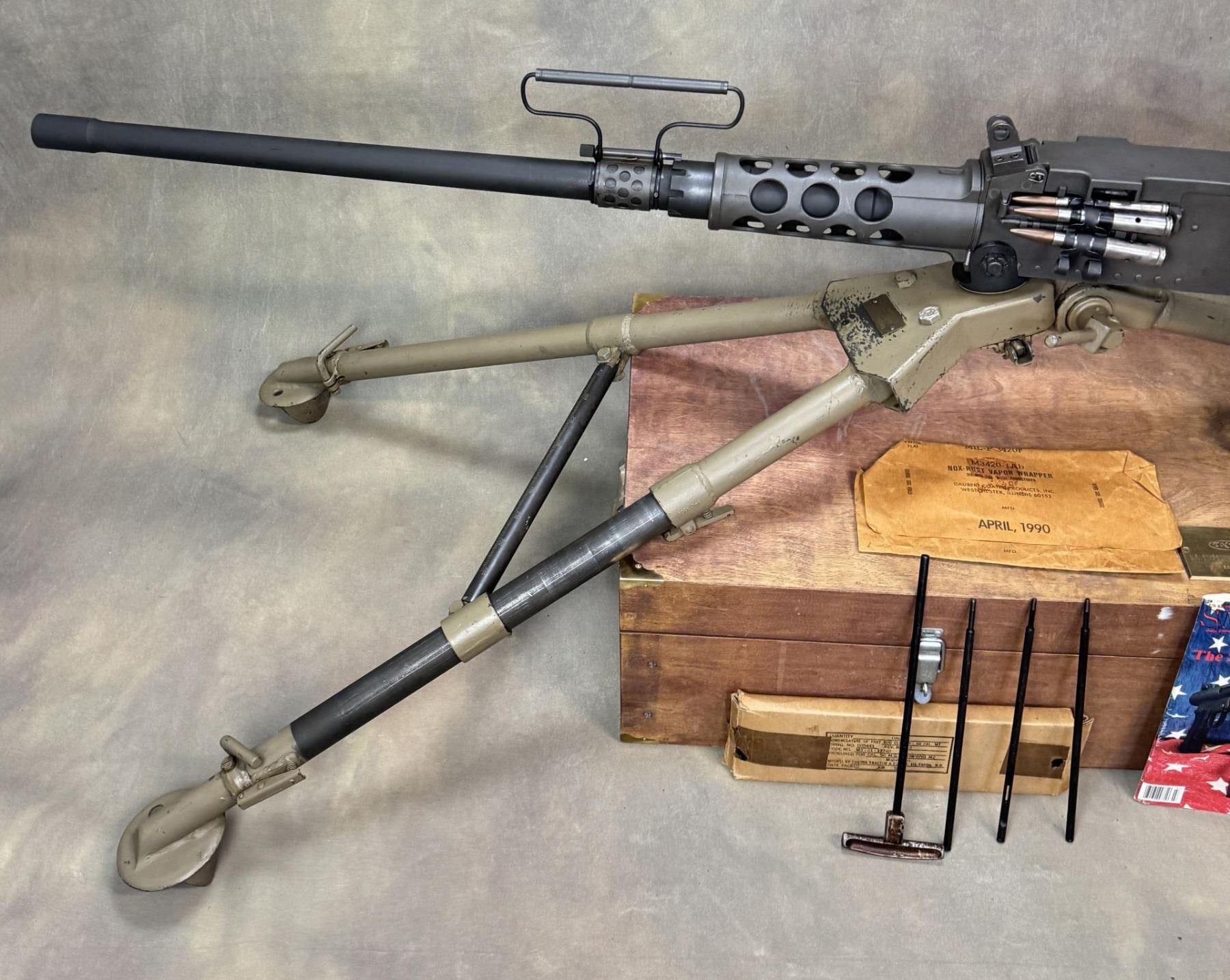 Includes nice wooden carrying case, and WW2 M3 tripod. Requires FFL Transfer. No sales to the following areas, a bid from any of these restricted areas will result in immediate termination of your agility to place bids with our auction company in perpetuity: California, Connecticut, Colorado, Delaware, Washington DC, Illinois, Hawaii, Maryland, Massachusetts, Washington State, New Jersey and New York.