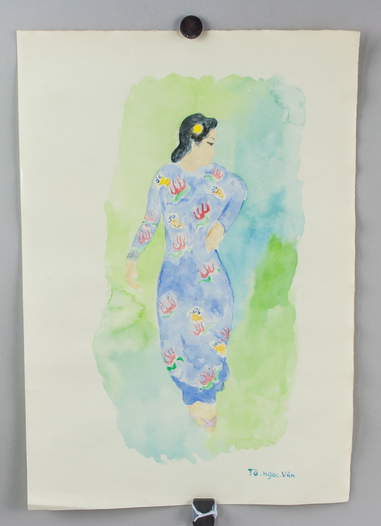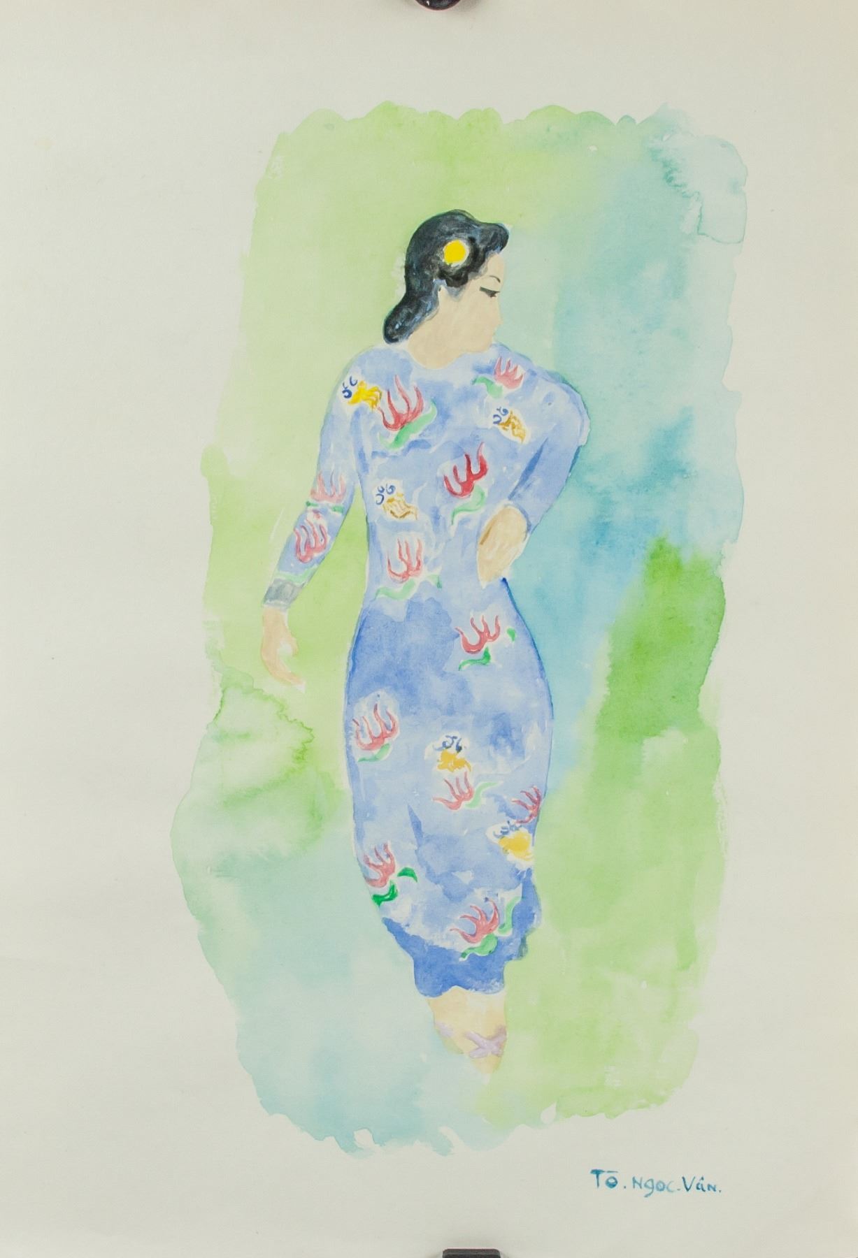 Watercolor on Paper. Signed and attr. To Ngoc Van (Vietnamese 1906-1954). Being one of Vietnam’s top painters in the first half of the 20 th century, To Ngoc Van influenced many Vietnamese painters of later generations and has been greatly appreciated by the art circle abroad. Being one of Vietnam’s top painters in the first half of the 20th century, To Ngoc Van influenced many Vietnamese painters of later generations and has been greatly appreciated by the art circle abroad. To Ngoc Van was born on December 15, 1906, in Hanoi, but his native land is Xuan Cau Village, Van Giang District, Hung Yen Province. This painter studied for five years at the Indochina Fine Arts College and graduated in 1931. He participated in a number of domestic and overseas exhibitions, including fine-arts exhibitions in Paris in 1931 and 1932. At the Colonies’ Exhibition held in Paris, he captured a gold medal and was awarded the certificate of honour at the exhibition of French Painters’ Association in 1932. In 1933, he was elected as a member of the French Painters’ Association. Between 1939 and 1945 To Ngoc Van was employed as a lecturer at the college where he studied. After the August Revolution, he took the post of rector of the first Fine-Arts College of the Democratic Republic of Vietnam. In addition, he won several honourable domestic prizes, such as the first prize at the National Fine Arts Exhibition held in Hanoi in 1954. PROVENANCE: Private estate (Perugia, Italy)