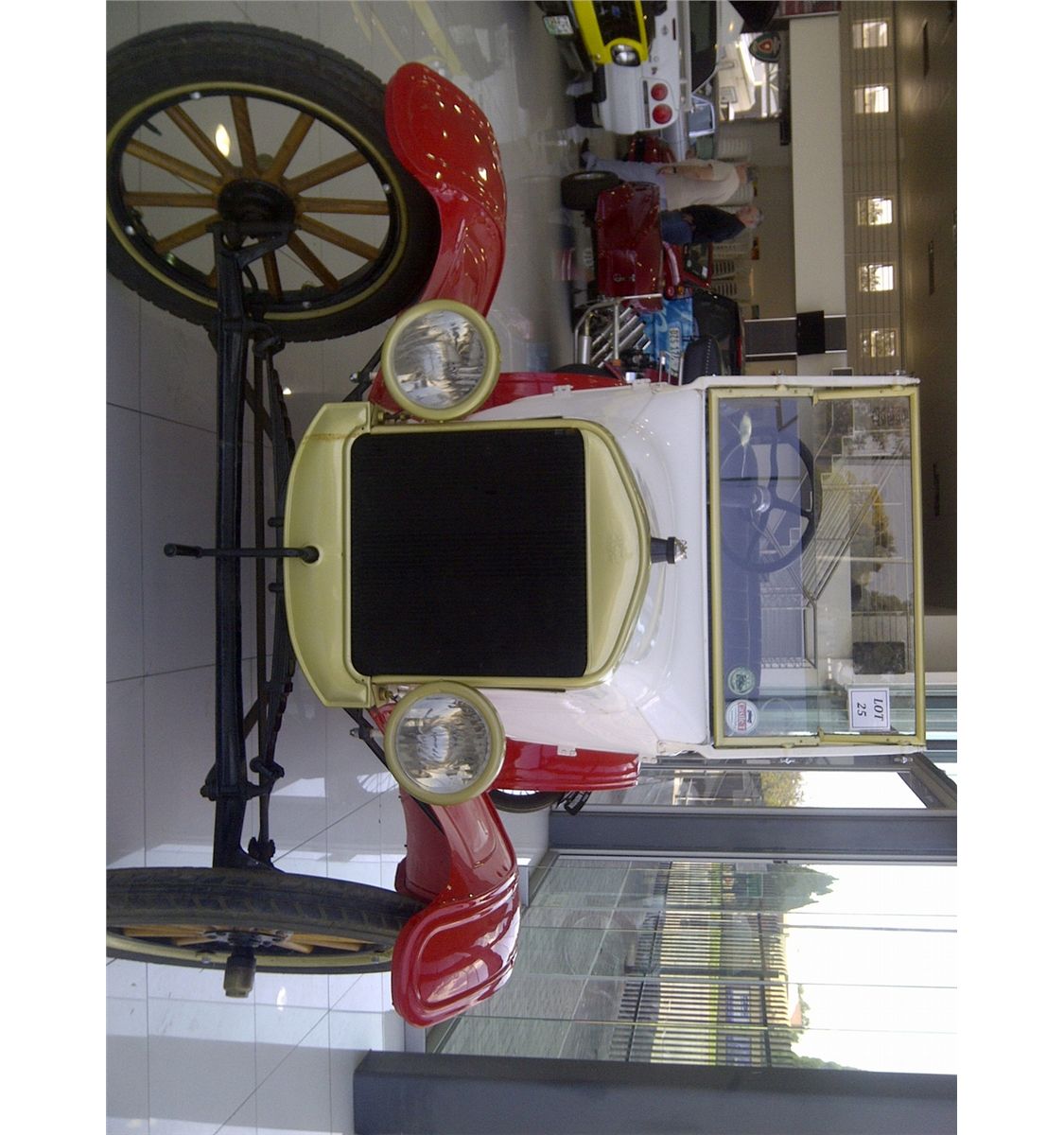 Make: Ford T Phaenton, Year: 1923, Colour: Red and white, Interior: Black leather seats, Mags: Dunlop Cord 30x 3 ½, Motorplan: N/a, Features: Superdipped firestone spare wheel, Right Hand Drive