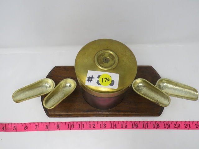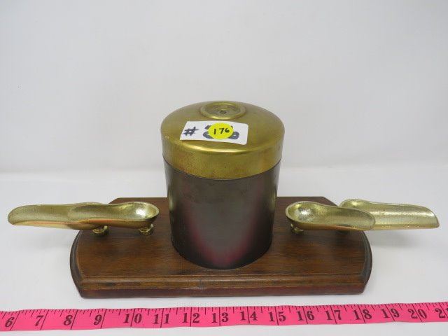 TOBACCO HUMIDOR W/WOOD & METAL FOUR PIPE HOLDER - HILSON STUDIO, BELGUIM