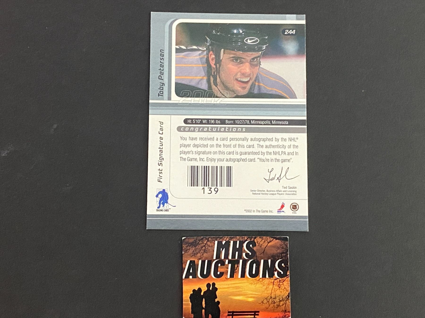 TOBY PETERSEN 2002 IN THE GAME FIRST SIGNATURE CARD AUTOGRAPH HOCKEY CARD