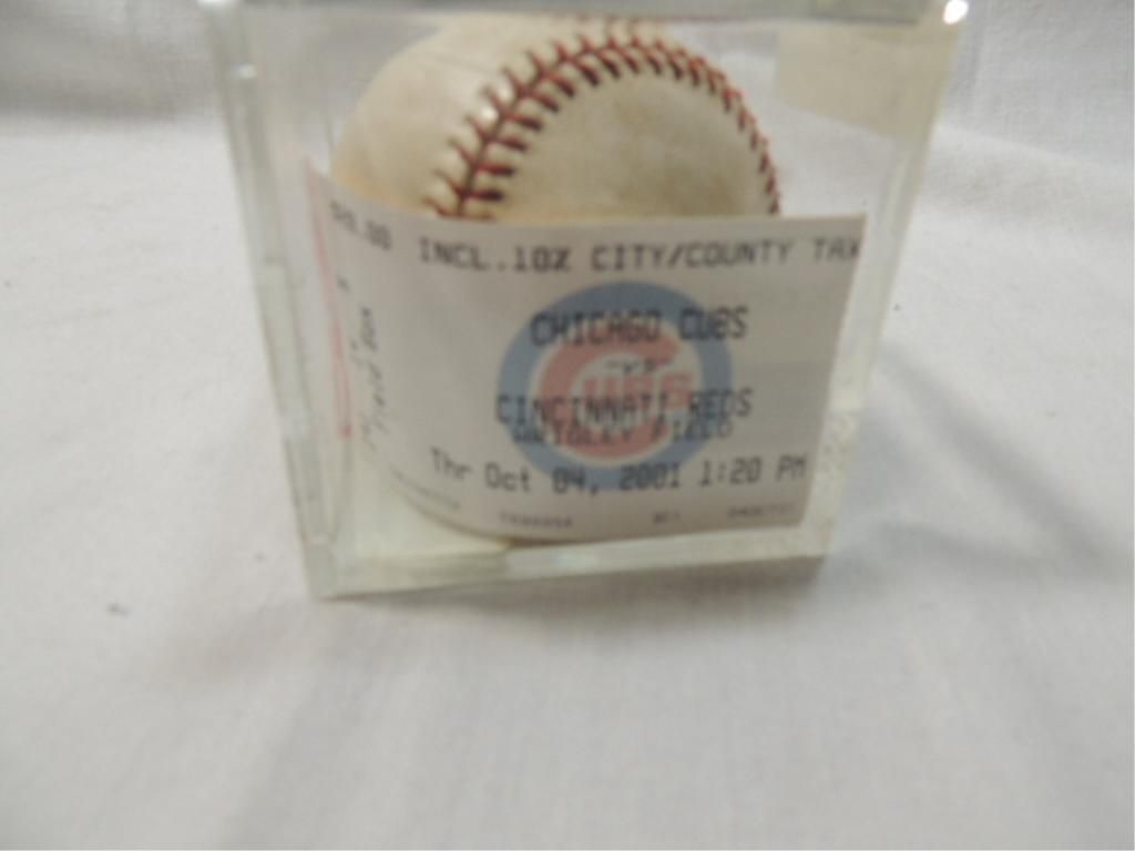 CUBS V. REDS HOMERUN BALL WITH TICKET STUB. SEE PHOTOS FOR DETAILS.