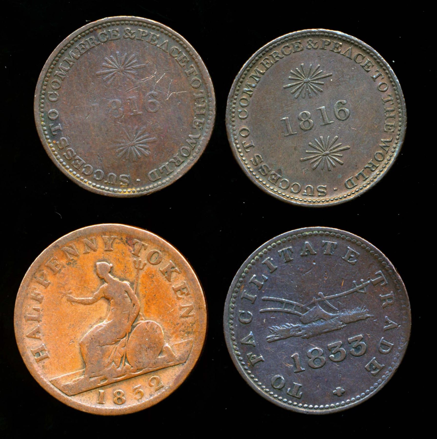TOKEN Halfpenny 1816-1833 A Lot of 4 Upper Canada Pieces Fine-Extra Fine+