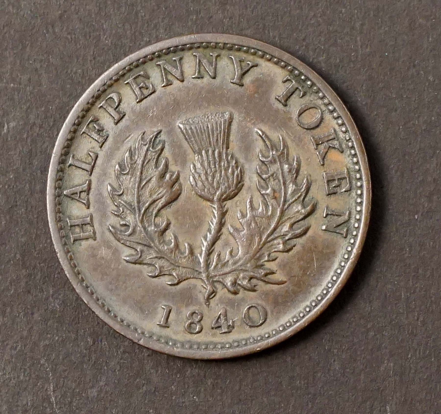 TOKEN Halfpenny 1840 NS-1E2 Br-874 9.0 gm. Extra Fine