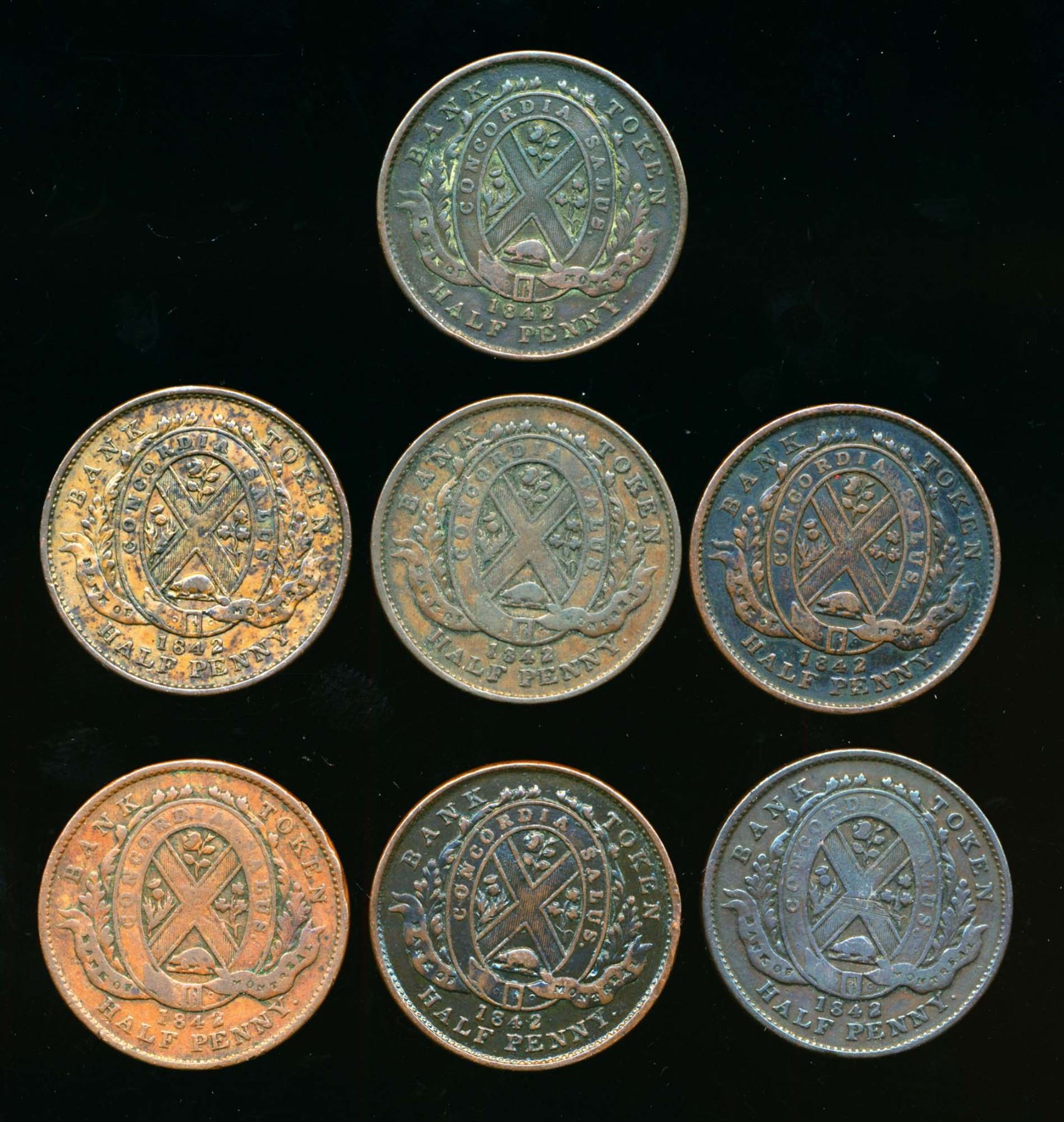 TOKEN Halfpenny 1842 PC-1A A 7 Coin Die Study Grouping Fine-Very Fine