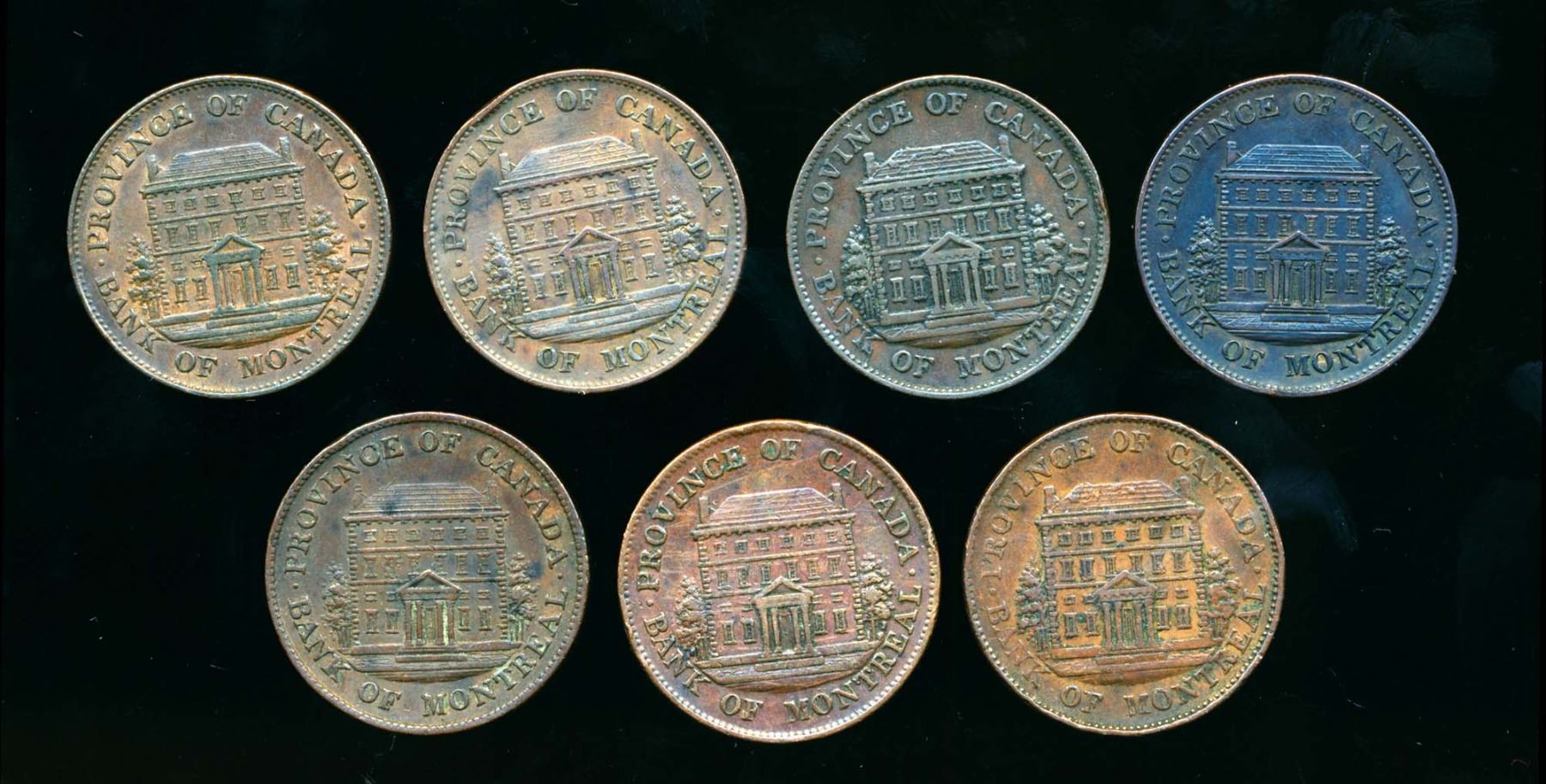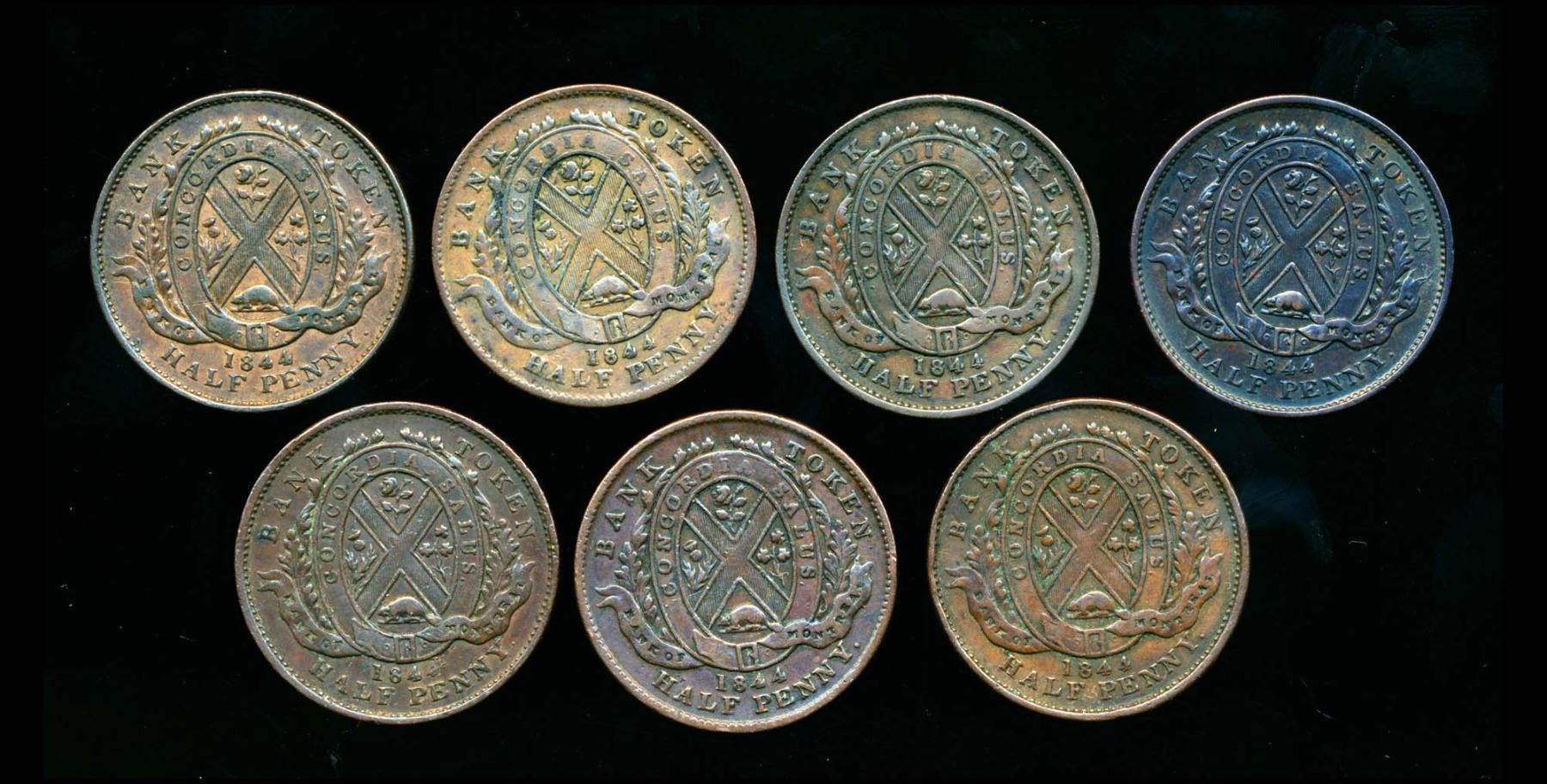 TOKEN Halfpenny 1844 PC-1B A 7 Coin Die Study Grouping VF-EF