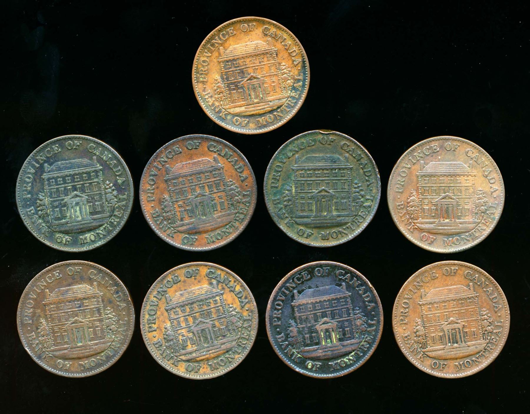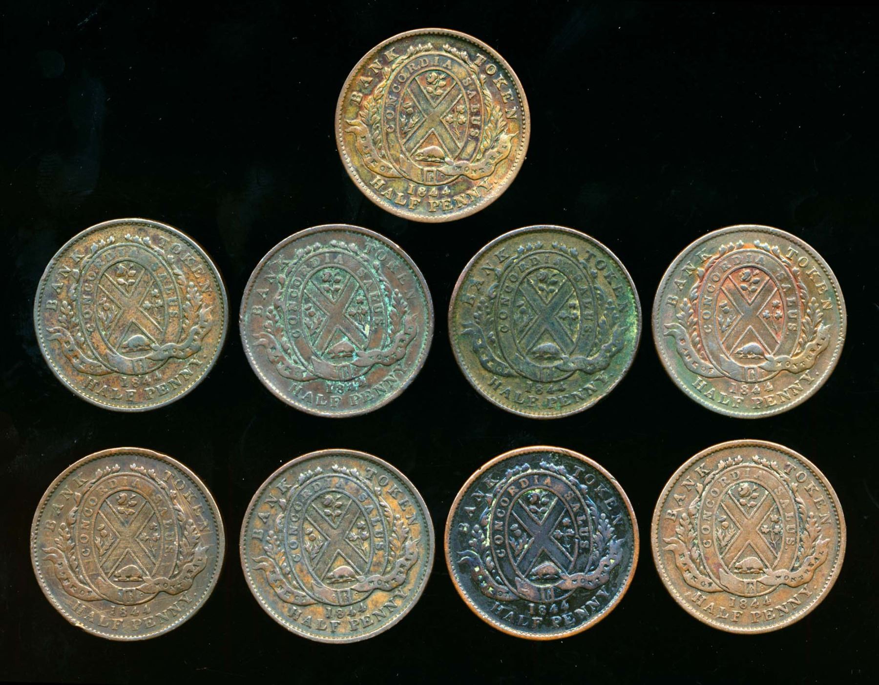 TOKEN Halfpenny 1844 PC-1B A 9 Coin Die Study Grouping Fine-Extra Fine