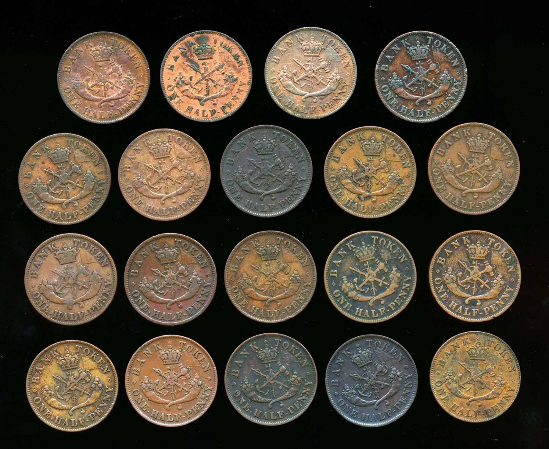 TOKEN Halfpenny 1850-57 PC-5 Br-570 A Study Group of 19 Mixed Dates Fine-Very Fine+